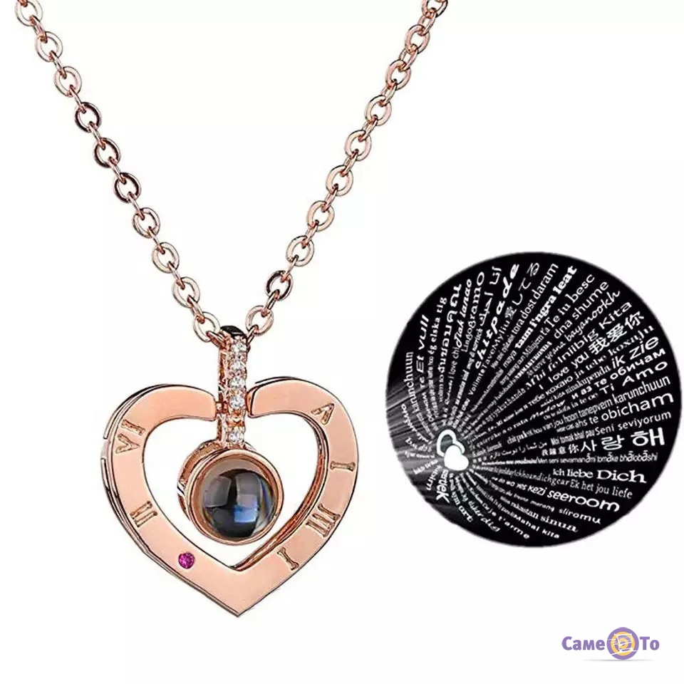 Зворушливий напис, виконано на 100 мовах світу, можна побачити, якщо направити промінь світла в центр кулона: чарівним чином з'явиться тінь де висвічуються найприємніші для всіх закоханих слова "Я тебе люблю". Елегантний дизайн амулета робить його доречною прикрасою до будь-якого стилю одягу. З його допомогою можна висловити свої почуття не тільки для другої половинки, а й для інших близьких людей: мами, сестри, доньки.
