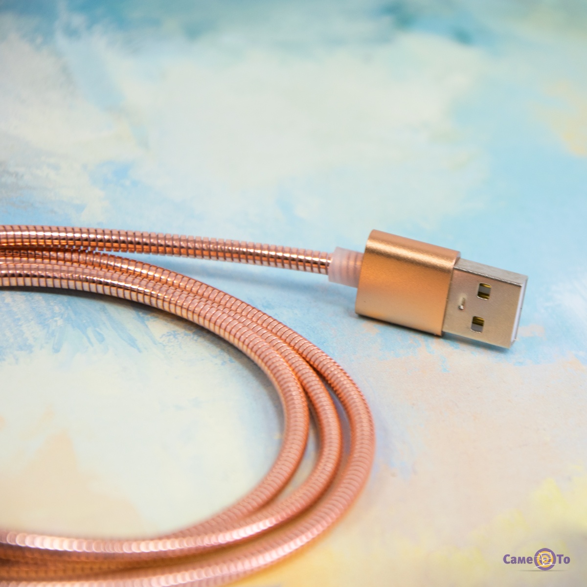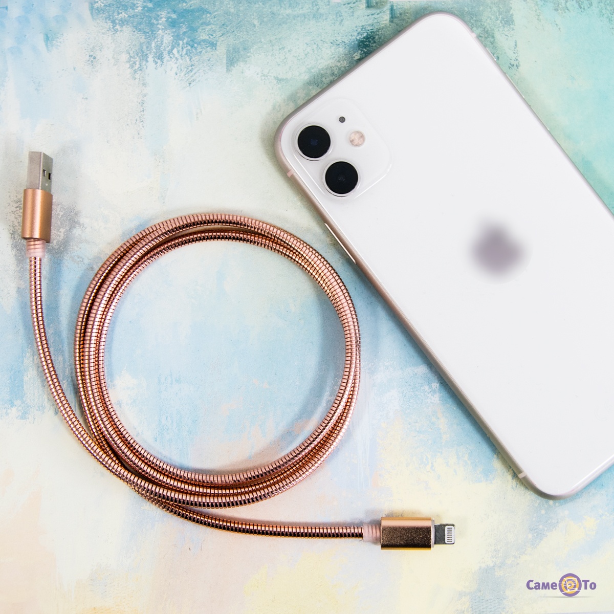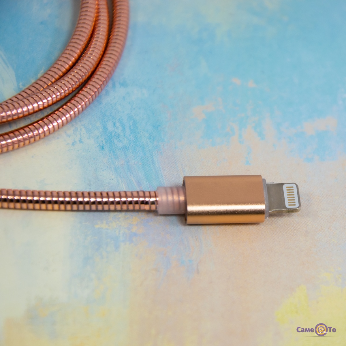 USB провід для айфона з роз'ємом lightning рожево-золотистого кольору використовується з будь-якими сучасними телефонами або планшетами для заряджання пристроїв. Також може підходити для передачі інформації з телефону на ПК. Провід зарядки айфона покритий міцним обплетенням, яке не боїться перегинів і не псується з роками. Шнур зарядки для айфона виготовлений у ніжному золотистому кольорі та ідеально підійде як подарунок будь-якій дівчині. Зарядний дріт для айфона виготовлений по довжині на 1 метр і важить лише 35г. Завдяки цьому він може дістати до будь-якої розетки і при перенесенні з собою в подорож не буде багато важити в дамській сумочці. Купити кабель зарядки айфон можна у нашому інтернет-магазині за найнижчою ціною. Товар виготовлений у чудовій якості та зможе прослужити вам не один рік.