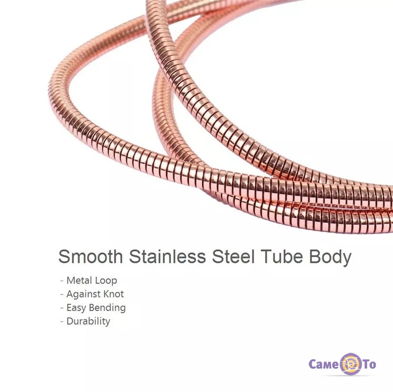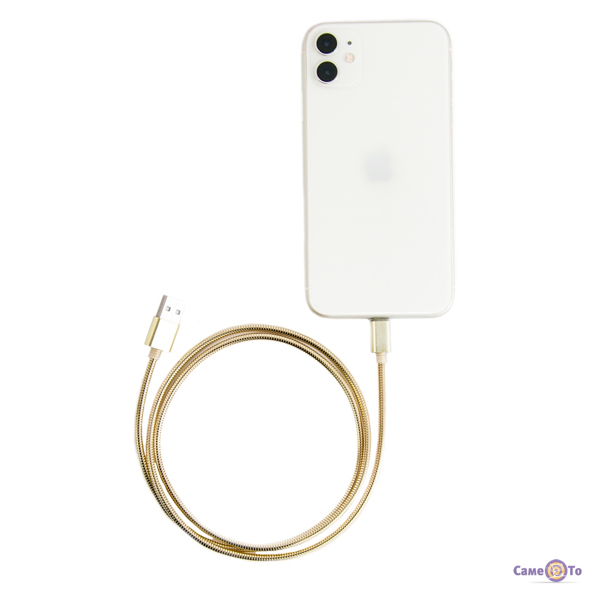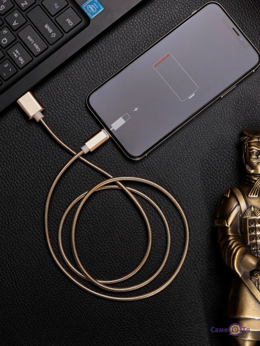 USB провід для айфона з роз'ємом lightning рожево-золотистого кольору використовується з будь-якими сучасними телефонами або планшетами для заряджання пристроїв. Також може підходити для передачі інформації з телефону на ПК. Провід зарядки айфона покритий міцним обплетенням, яке не боїться перегинів і не псується з роками. Шнур зарядки для айфона виготовлений у ніжному золотистому кольорі та ідеально підійде як подарунок будь-якій дівчині. Зарядний дріт для айфона виготовлений по довжині на 1 метр і важить лише 35г. Завдяки цьому він може дістати до будь-якої розетки і при перенесенні з собою в подорож не буде багато важити в дамській сумочці. Купити кабель зарядки айфон можна у нашому інтернет-магазині за найнижчою ціною. Товар виготовлений у чудовій якості та зможе прослужити вам не один рік.