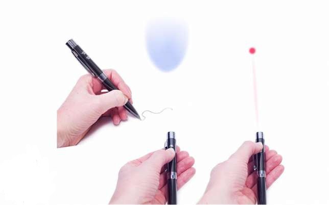 Что представляет собой этот универсальный гаджет? Во-первых, это шариковая ручка, которая поможет сделать необходимые записи в еженедельнике. Во-вторых, это удобная лазерная указка, что используется спикерами во время выступлений для более комфортного восприятия информации слушателями, ведь говорящему не приходится подходить к доске, а можно с места указать на визуальную информацию. Ну и в-третьих, это еще и фонарик, с помощью которого можно легко открыть дверь, посветив на замочную скважину.