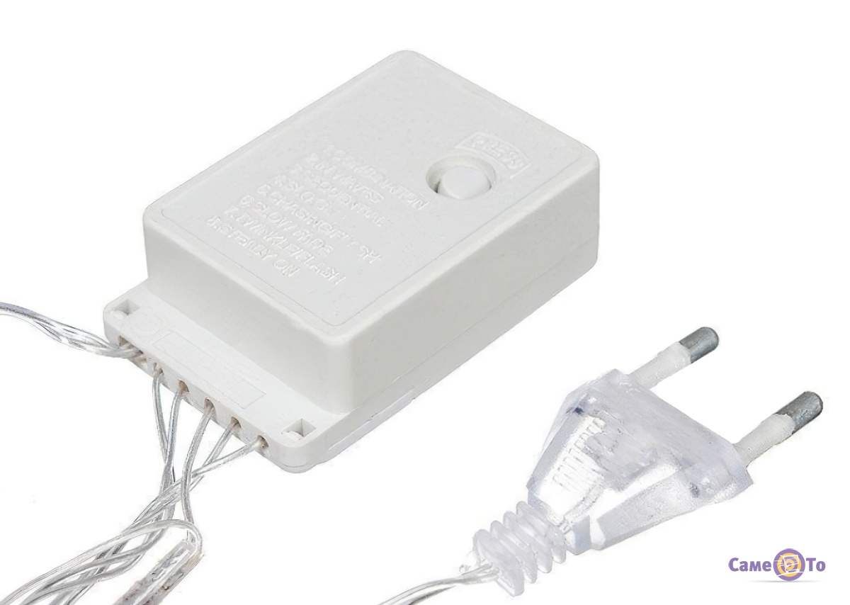 УВАГА!!! Гірлянди даної моделі сумісні між собою і можуть бути з'єднані одна з одною послідовно завдяки спеціальному перехіднику-розетці, який є в кожній гірлянді даної моделі (див. фото). В цей перехідник-розетку можна вставити вилку наступної гірлянди і з'єднувати їх між собою (за принципом "папа-мама"), утворивши таким чином ланцюг з гірлянд під'єднаний до одного джерела живлення (до однієї розетки).