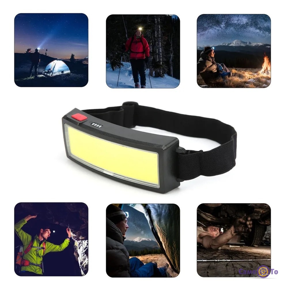 Налобний ліхтар "TM-G14 LED COB Headlamp" - надійний супутник для ваших пригод! Цей чорний лобовий ліхтар забезпечує потужне освітлення завдяки світлодіодам COB. Неймовірно легкий та зручний у використанні, він ідеально підходить для активного відпочинку, риболовлі, походів та велосипедних прогулянок.