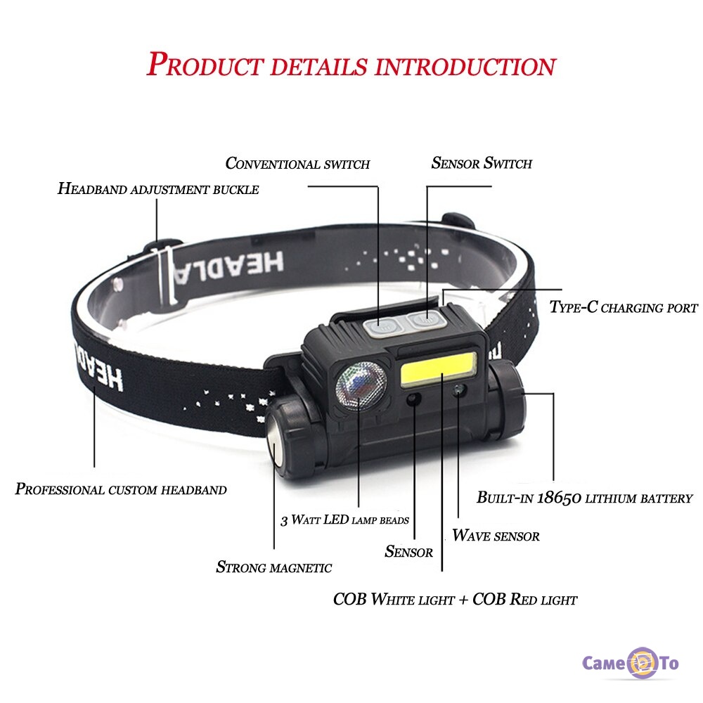 Ліхтарик на голову з акумулятором та сенсором "Multifunctional Headlamp BL 123"