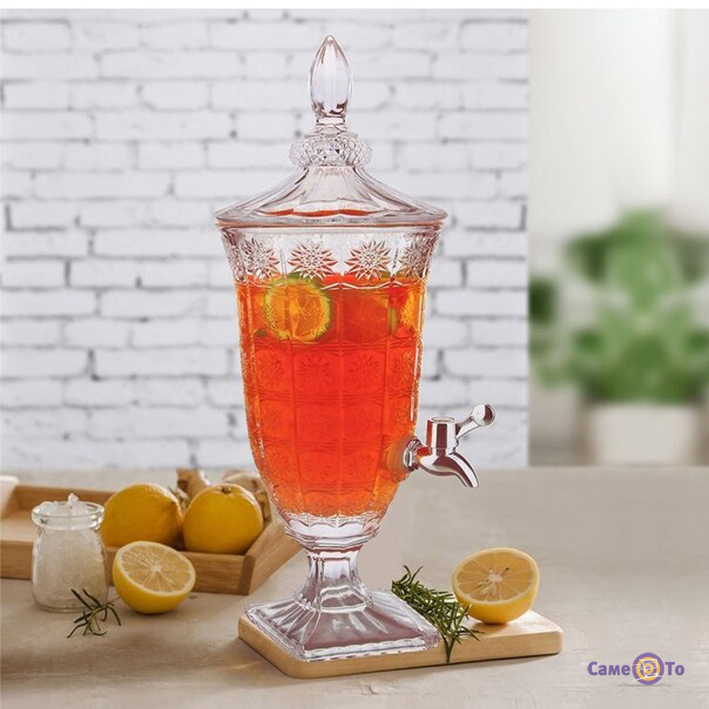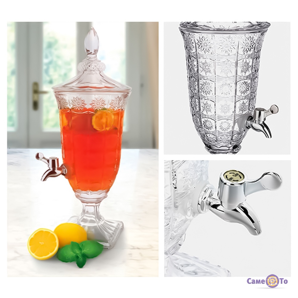 Подібний диспенсер для напоїв є скляною ємністю з краном, що забезпечує ефектну подачу безалкогольних і алкогольних напоїв, що неодмінно викликає захоплення у гостей. Розлив рідини здійснюється через спеціальний краник. Більше не потрібно наповнювати келихи гостей, адже графин із краном допоможе їм зробити це самостійно.
