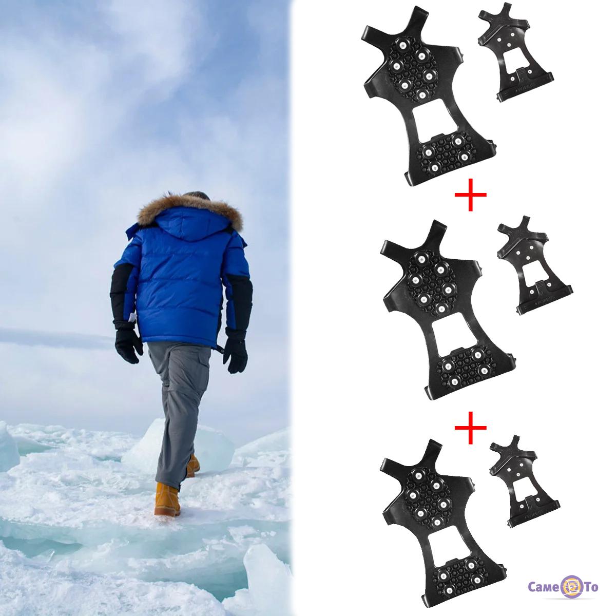 Льодоступи на взуття на 10 шипів (комплект - 3 пари) розмір L (41-45) є якісними та надійними льодоступами, які гарантовано захистять вас від падінь та травм на слизькій поверхні. Вони легкі та зручні, не ковзають та не дозволять вам зісковзнути на льоду чи снігу.