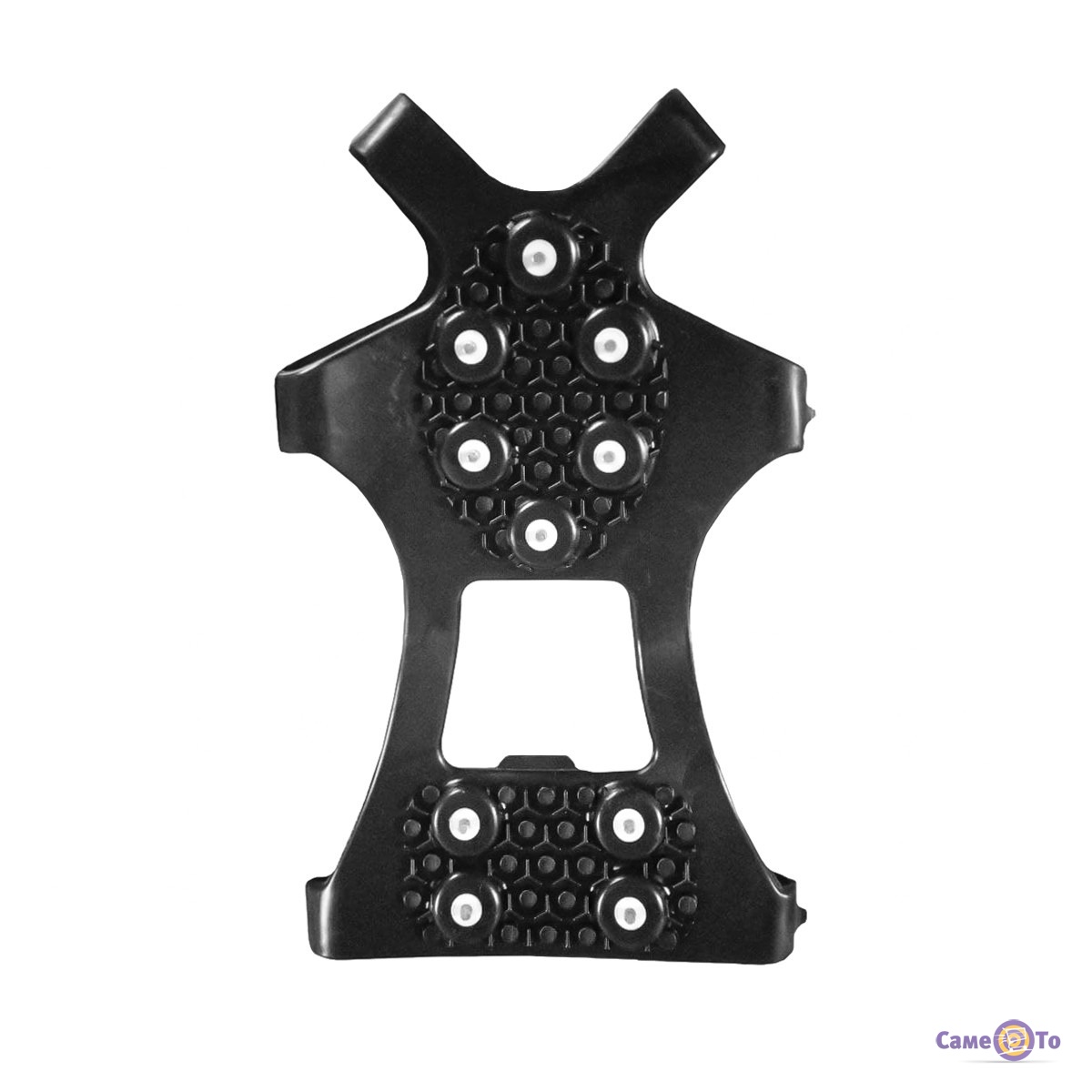 Модель представляє собою міцні гумові накладки на підошву взуття з десятьма сталевими шипами: