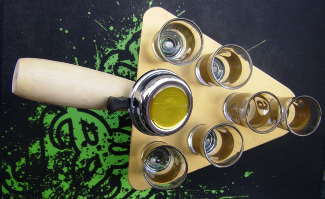 Подібний предмет в компанії – це не просто піднос і не просто чарки, це повноцінний ритуал, що заслуговує найвищих похвал. Будь-який захід стане веселіше і яскравіше. Вся суть лопатки з чарками полягає в тому, що сам піднос зроблений у вигляді так званої лопатки, на ручці якої встановлено дзвіночок, по типу велосипедного, і, зрозуміло, пронумеровані тематичні чарки. А ось що робити з цією лопаткою з чарками покаже Вам Ваша фантазія. Дамо лише пару корисних порад по застосуванню. Лопатка з чарками може стати відмінним подарунком як чоловікові, так і жінці. І зверніть увагу на вбудований дзвіночок - він там не просто так. Таким чином гості можуть оповіщати про добавку напою, наприклад. Ця невигадлива лопатка напевно стане невід'ємним атрибутом Вашого святкового столу.