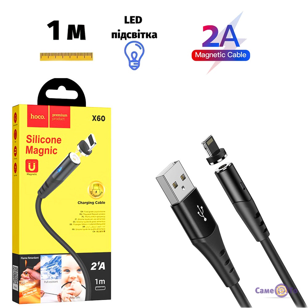 HOCO X60 MAGNETIC - кабель зарядки для айфона, що відрізняється особливою надійністю, багаторазово перевершує аналоги за показниками довговічності.