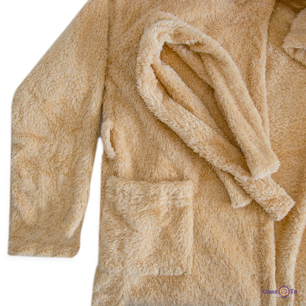 • Халат на запах, с капюшоном и карманами, есть пояс;