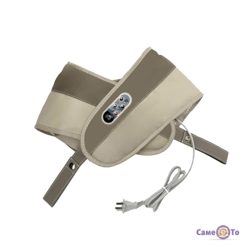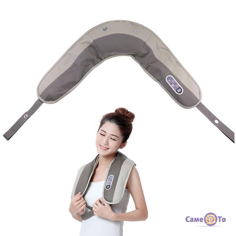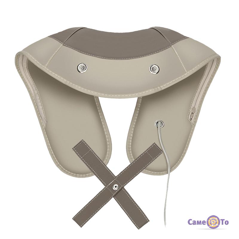 Масажер створений у формі коміра, який добре захоплює зону грудей, плечей, комірцеву зону і щільно лягає на плечі, також даний масажер можна застосовувати на стегнах, попереку і литках ніг.