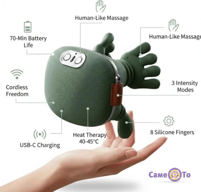 • Полная автономность: встроенный аккумулятор позволяет наслаждаться массажем в любом месте — дома, в офисе или во время поездки, не привязываясь к розетке.