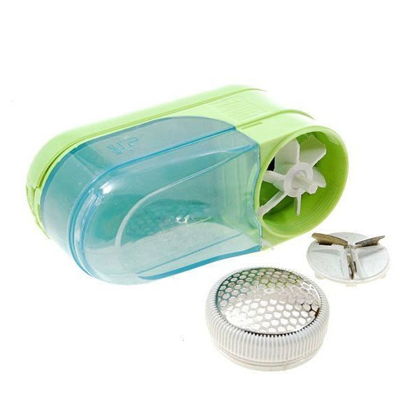 Аккумуляторный прибор для удаления катышков по принципу действия похож на электрическую бритву. Катышки, после того, как их срезали, собираются в специальный съемный прозрачный отсек. Ткань одежды не может повредиться из-за надежной защиты сеткой.