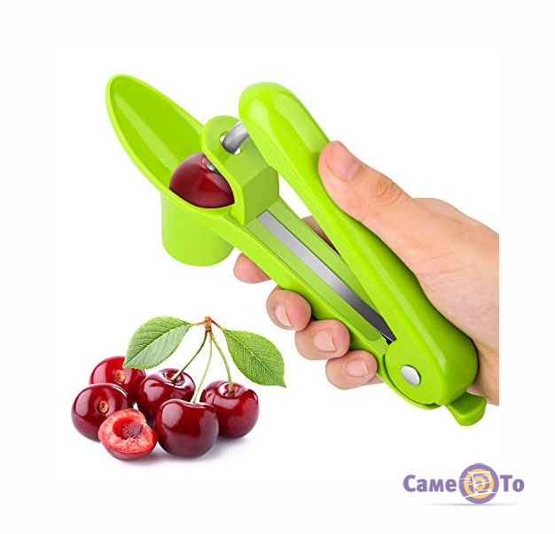 Для початку роботи з ним досить поставити поруч з собою дві тарілки: одна для ягід, а друга для кісточок. Потім відправити по одному плоду в спеціальну ємність приладу для видалення кісточок з необхідних ягід. Після необхідно натиснути на ручку для відділення самої кісточки від м'якоті ягоди.