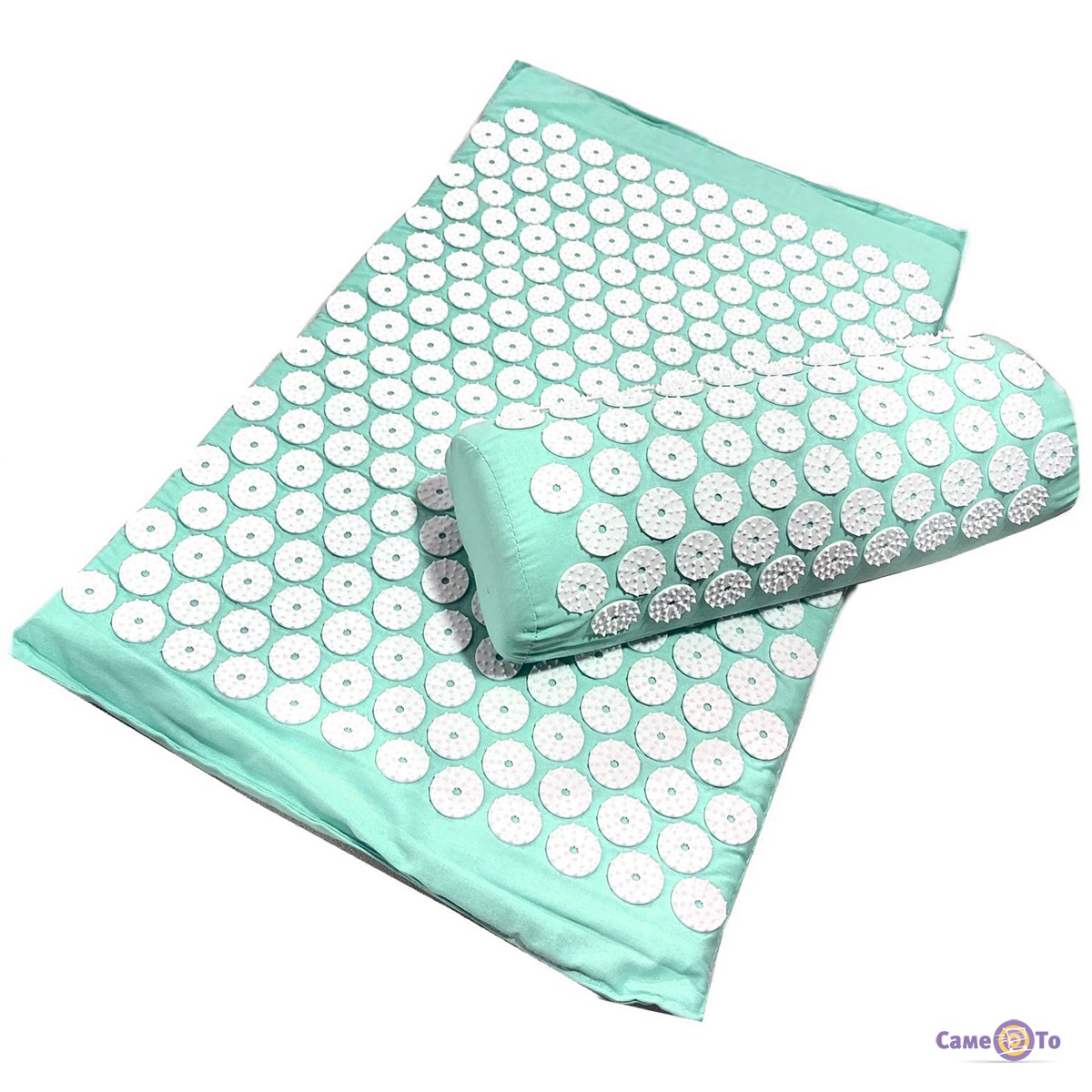 Массажный коврик апликатор кузнецова с полуваликом, акупунктурный коврик Бирюзовый