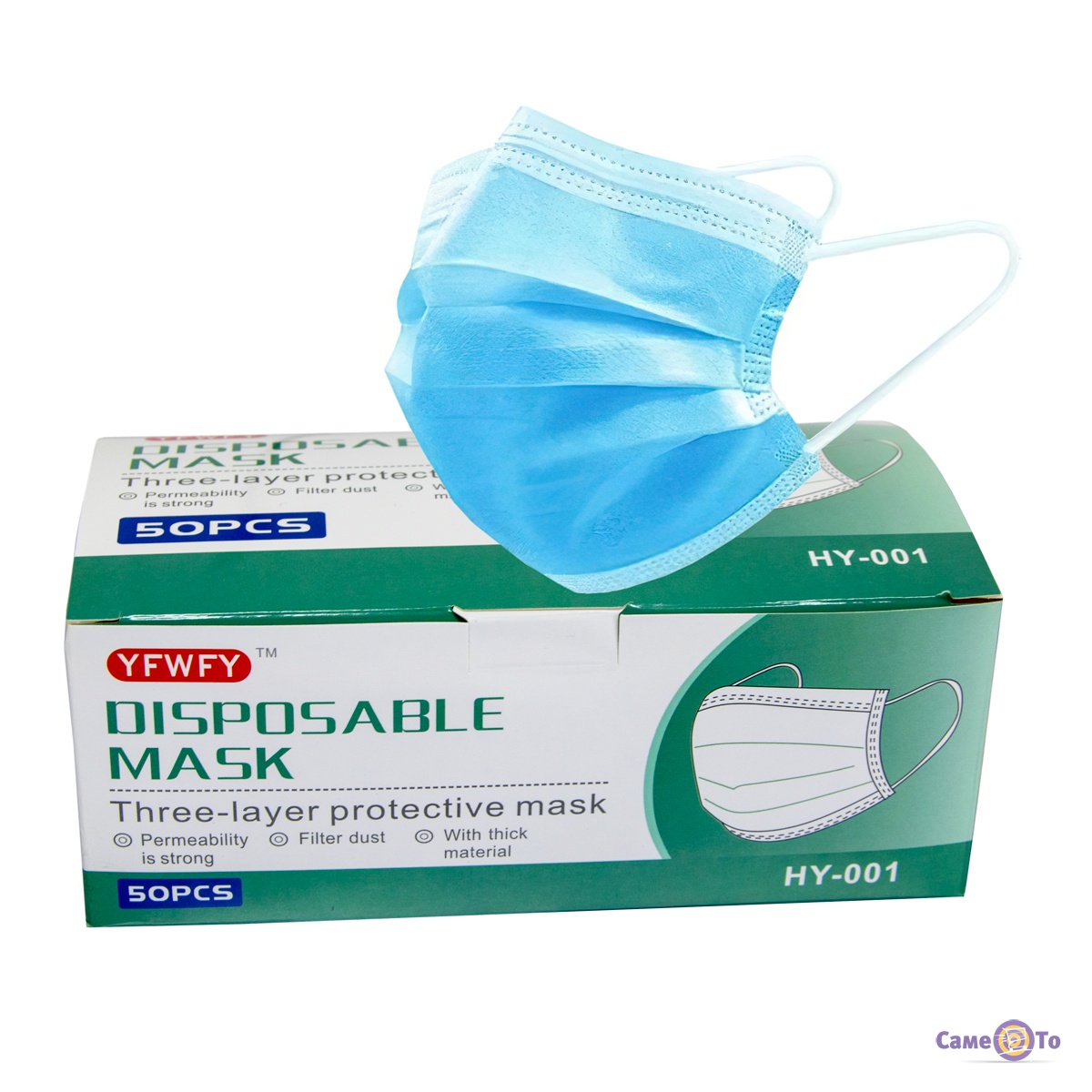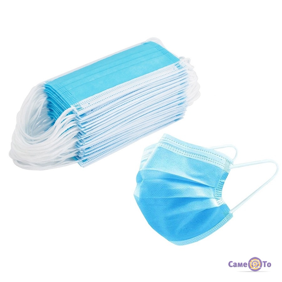 Медичні маски одноразові HY-001 Сині 50 шт, тришарові захисні маски