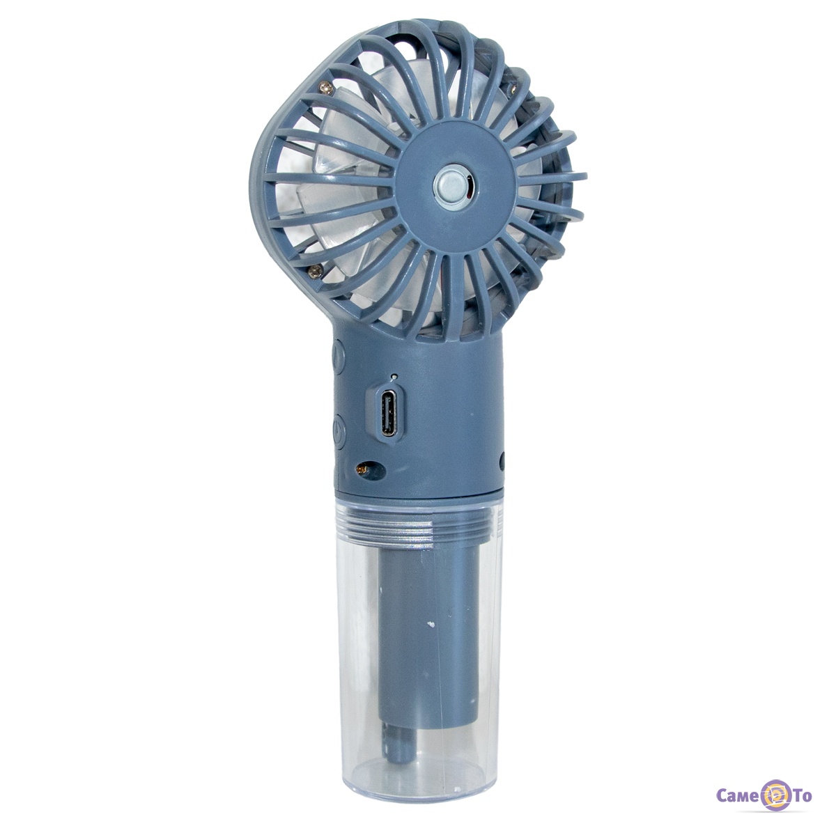 Компактний і легкий вентилятор зручно лежить в руці і легко поміщається в сумку або рюкзак. Він працює від вбудованого акумулятора і заряджається через USB, що робить його повністю автономним - ніяких батарейок та прив'язки до розетки. Просто налийте воду в резервуар і увімкніть туман - ефект не забариться.
