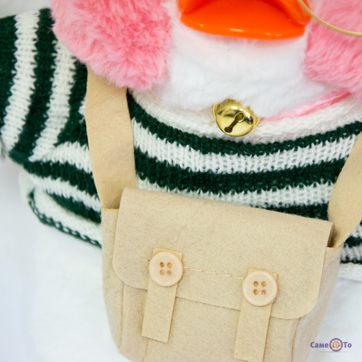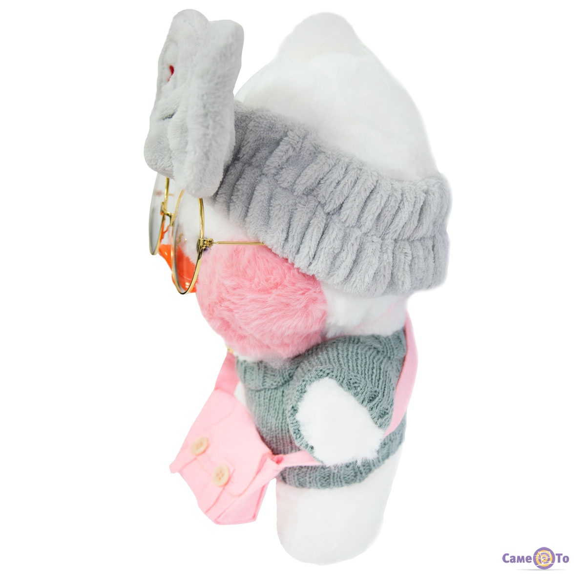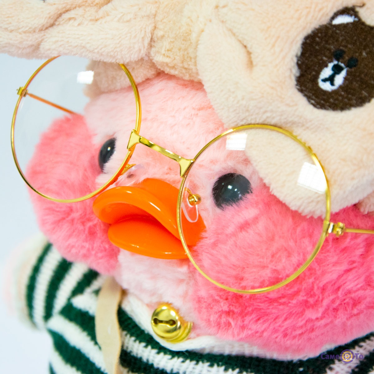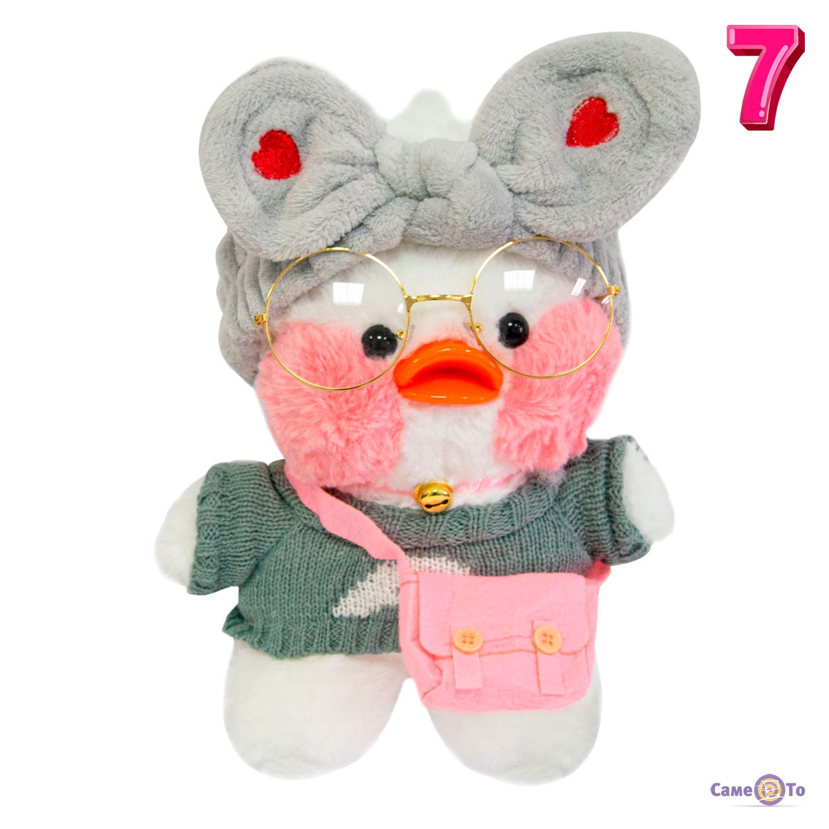 Уточка с очками сделана из плюша высокого качества, который приятен на ощупь и мягкий. Основу наполнителя составляет легкий синтепух, поэтому вес утенка всего 200 грамм. Оранжевый клюв игрушки выполнен из пластика. Высота с учетом хохолка составляет 30 сантиметров, в наборе с утенком представлена милая миниатюрная одежда и аксессуары.