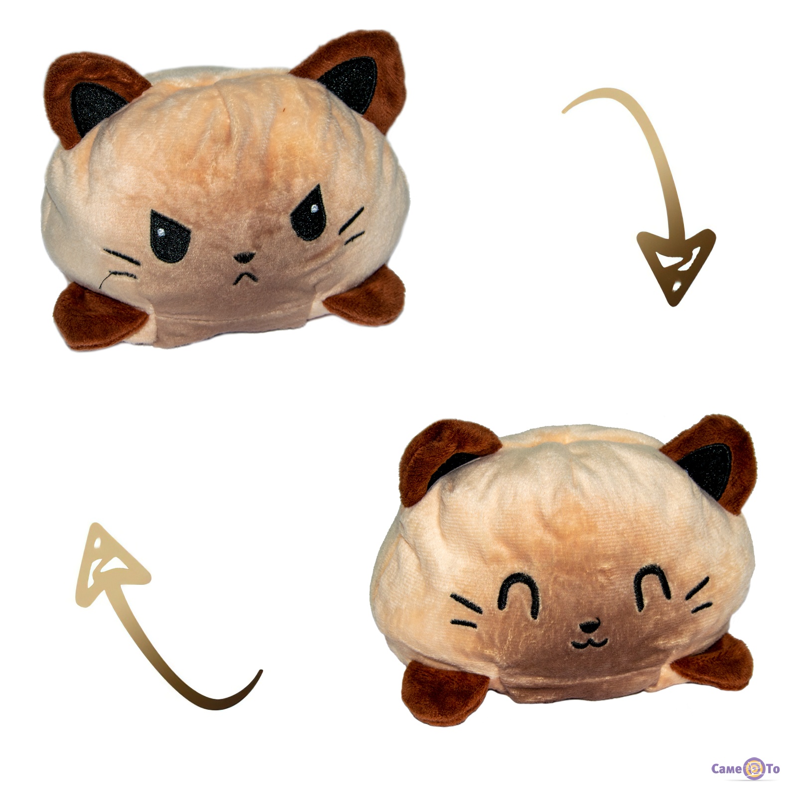 Тому що перед вами кіт перевертень. Роблячи перевороти, він висловлює емоції. Тільки один рух, і м'яка іграшка котик міняє свою радісну усмішку на похмуру та злу мордочку. М'яка іграшка кіт схожа на іншу популярну модель - восьминіг перевертень. Як і восьминіжка перевертня, вона користується популярністю у діточок будь-якого віку. А все так, тому що перед нами іграшка змінює настрій за кілька секунд.