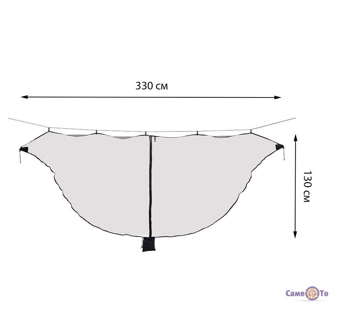 Дана москітна сітка для гамака виготовлена з нейлону, вона досить щільна, що дозволяє не пропускати всередину комах і в той же час не перешкоджає потраплянню свіжого повітря. Застібається сітка на гамак завдяки блискавцы, а її універсальний розмір 3,3 м × 1,3 м підходить практично для всіх типів гамаків. Використовувати подібний аксесуар і легко, і зручно. Конструкція сітки продумана до найменших деталей, вам лише необхідно підвісити її на мотузці так, щоб гамак був розташований всередині. І все, москітна сітка готова до використання.