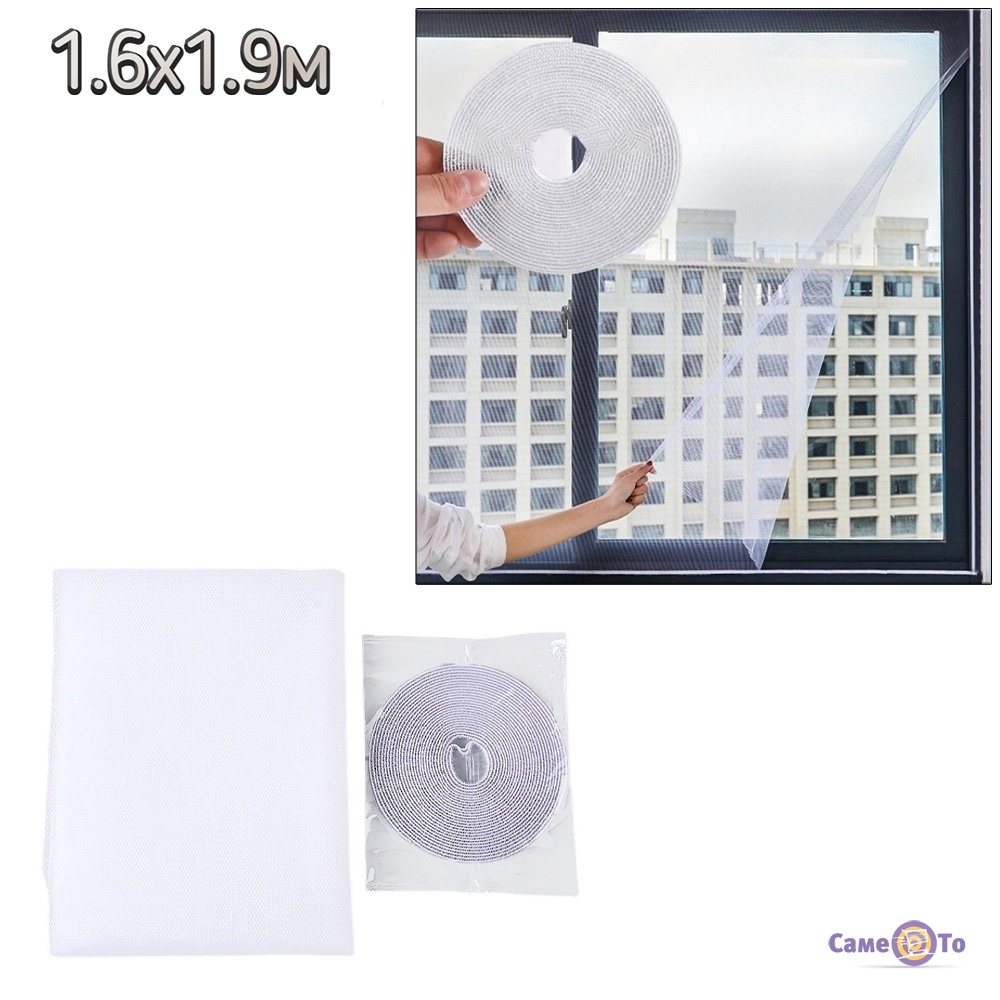 Ця сітка ідеально підходить для вікон різних розмірів завдяки щедрій площі 1.6х1.9м. Вона легко монтується на віконні рами за допомогою липучок, що забезпечує міцне та надійне кріплення. Ви можете встановити її на будь-яке вікно у вашому будинку, офісі чи квартирі.