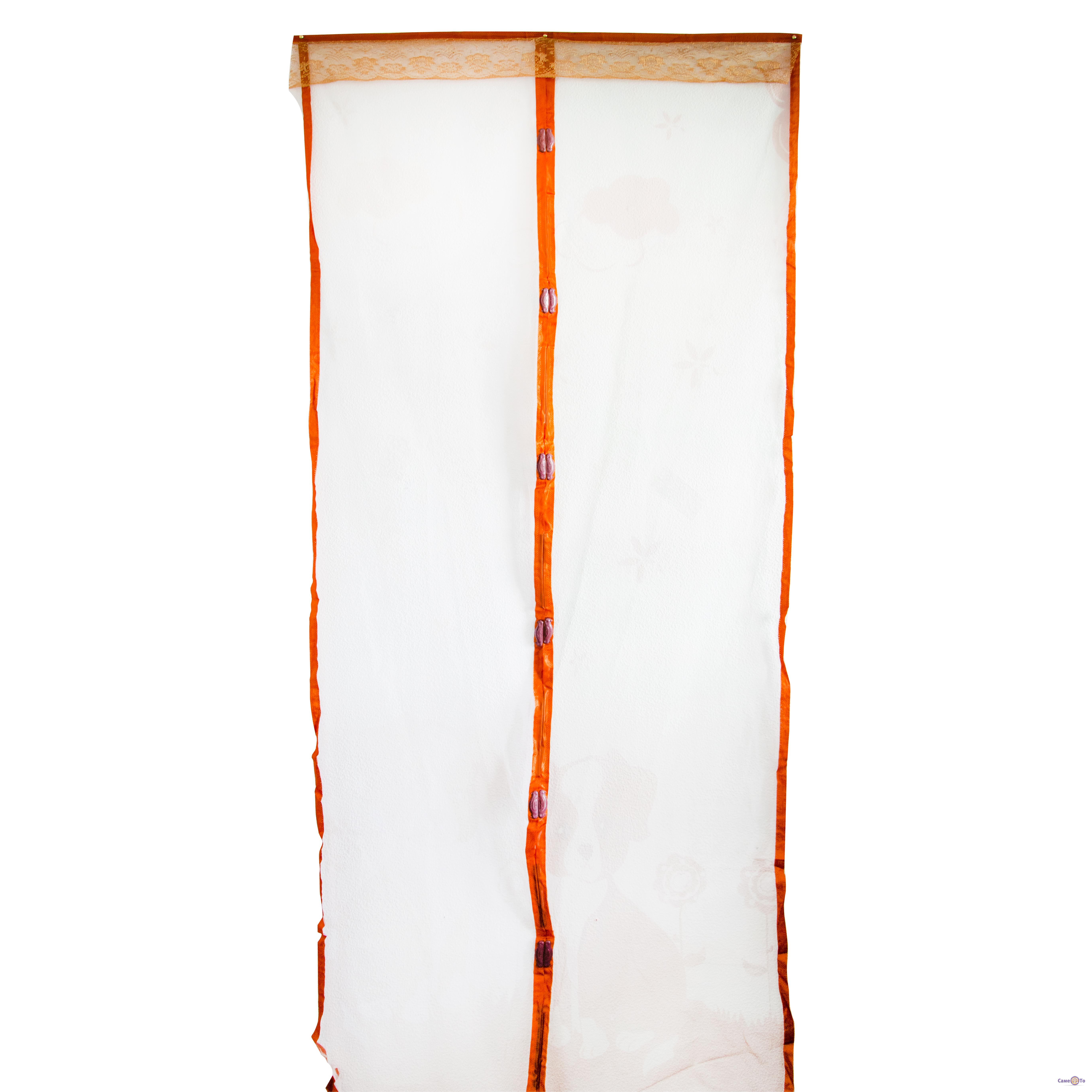 Такі москітні сітки хороші тим, що вони не псують стіни чи укоси. Кріпиться москітна сітка на двері за допомогою двостороннього скотчу, який наприкінці сезону легко зняти або маленькими кнопками. Ну а найголовніше, перед нами москітна сітка на магнітах, вам не доведеться її постійно поправляти руками. Після проходу крізь двері сітка антимоскітна міцно з'єднується посередині за допомогою надійних магнітів.