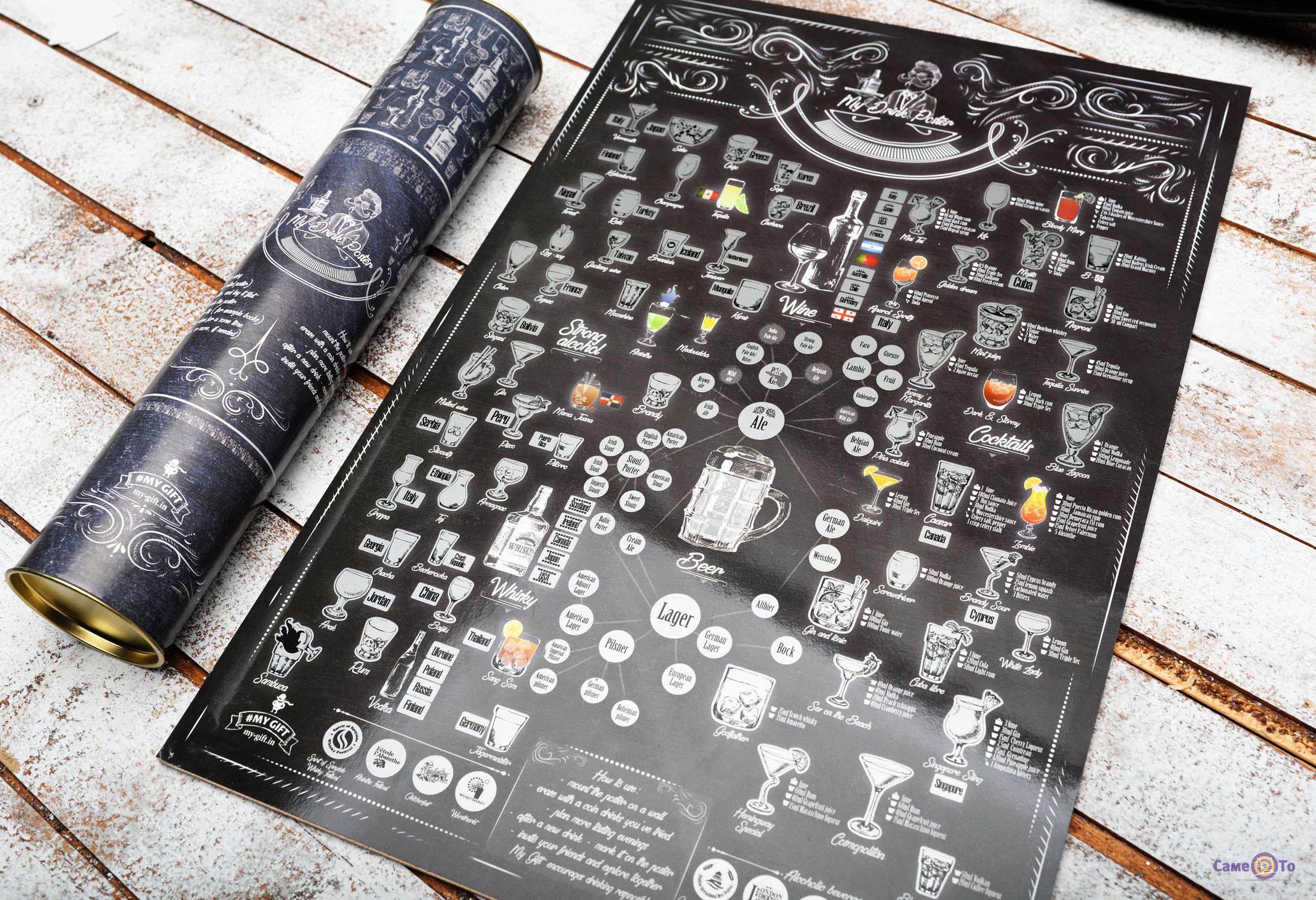 Якщо у вас є друзі, які завжди намагаються спробувати щось новеньке з алкоголю або ж ви самі не проти розвивати свої дегустаторські здібності, тоді найоригінальнішим подарунком стане My Drink Poster.