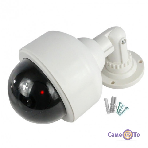 Муляж відеокамери виглядає в точності, як і оригінал. Його можна кріпити на стіну або стелю. Також муляж камери відеоспостереження варто використовувати в приміщеннях, наприклад в будинках або офісах. Об'єктив дуже схожий на оригінальний. Єдина відмінність - Camera Dummy 2000 не здійснює відеозапису, не надсилає дані на пост відеоспостереження і не подає тривожного сигналу. Завдяки червоному світлодіоду створюється враження, що працює інфрачервоний датчик. Камера повертається з боку в бік. Також муляж створює відчуття роботи декількох камер в зоні спостереження.