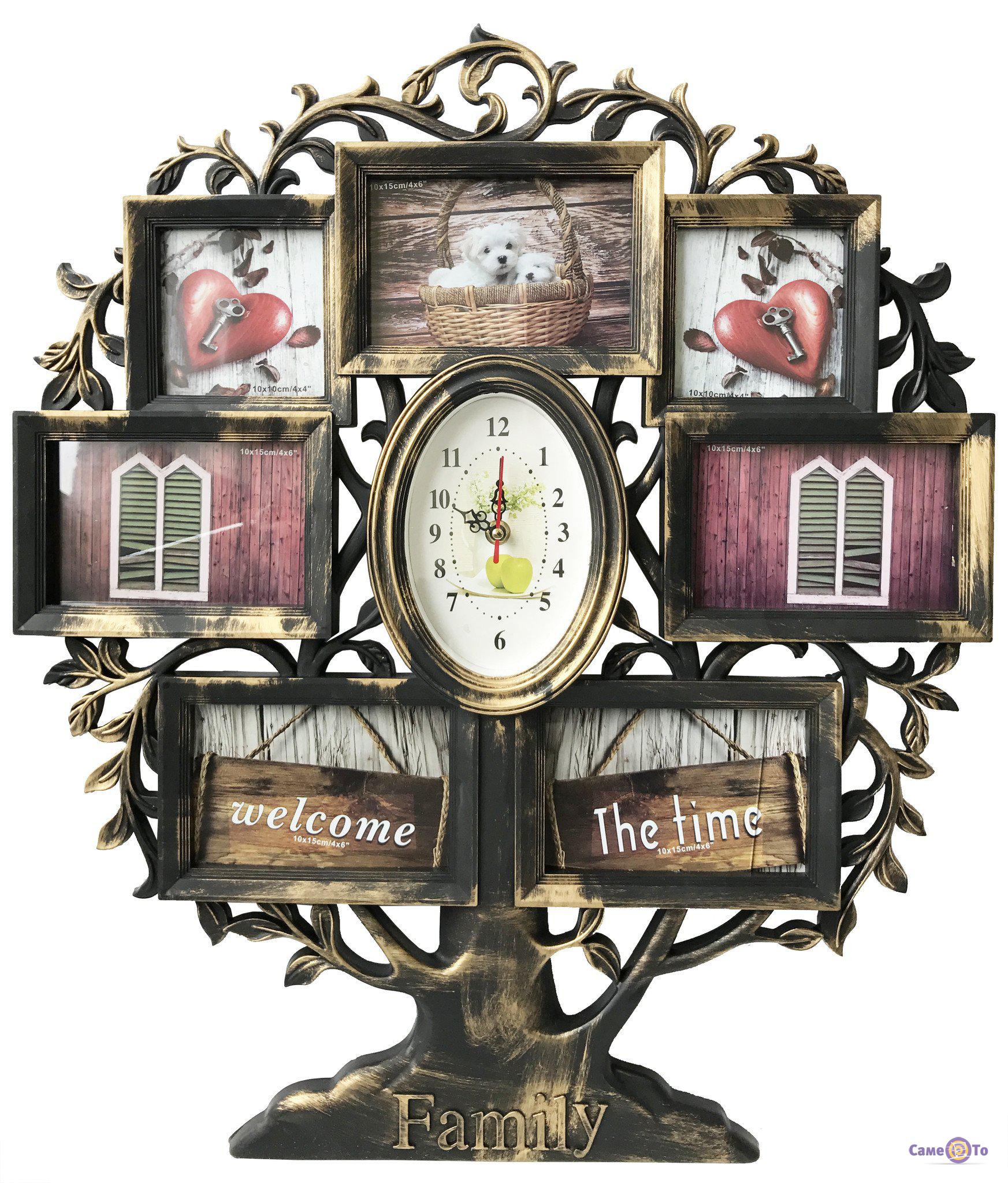 Мультирамка - це гідний подарунок для кожного: молодої сім'ї, батьків, друзів або колег. Особливість даного виробу полягає в тому, що завдяки продуманому дизайну перед нами не просто аксесуар, який демонструє пам'ятні фото, а й настільний годинник. Так, як, ця мультірамка доповнена годинником, що розташований прямо по центру, а навколо циферблата вже і знаходяться осередки для знімків різної форми. У даній мультирамці можна розмістити цілих сім фотографій, а це значить, що вона здатна гідно зберегти найяскравіші моменти життя сім'ї. Якщо у Вас намічається переїзд або похід в гості до друзів, даний аксесуар буде гідним варіантом покупки або подарунка, так як мультирамка з годинником ідеально впишеться в обстановку будь-якого будинку або квартири.