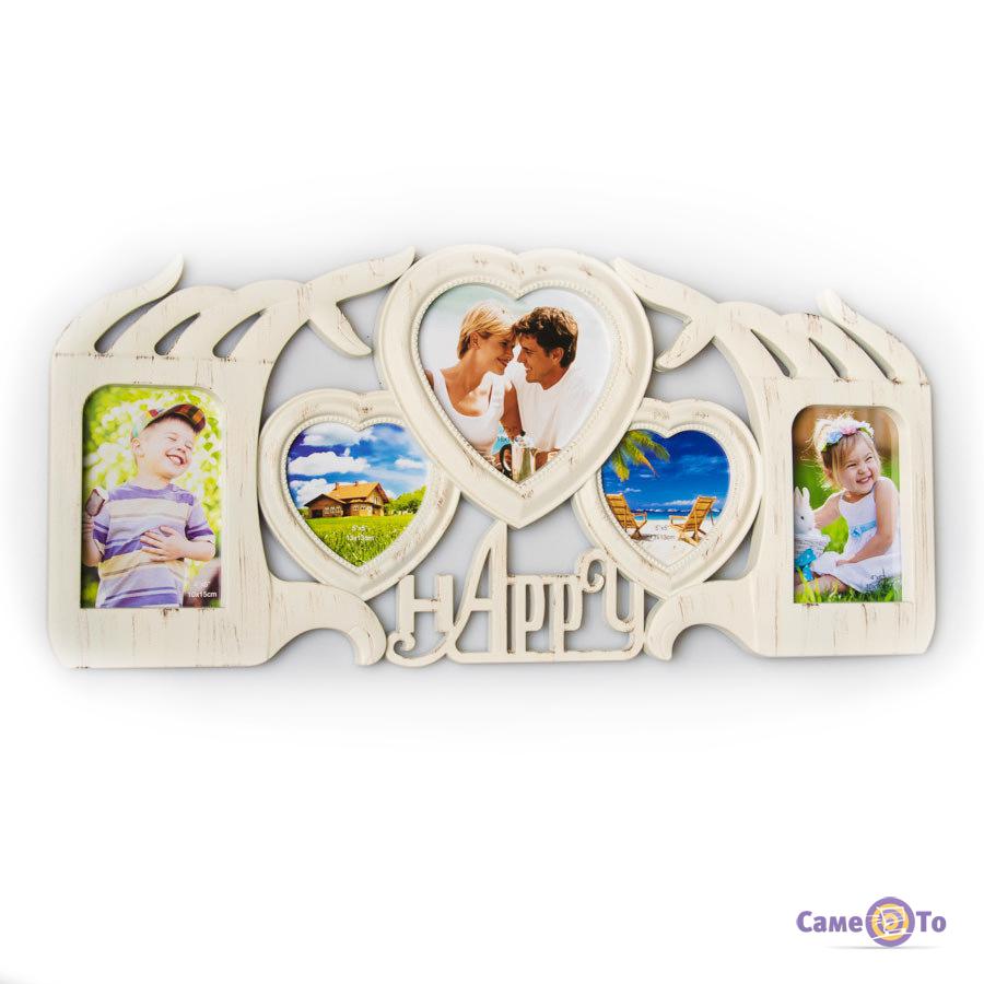 Время быстро проходит, оставляя нам лишь воспоминания. Фотография - это отличный способ сохранить важные моменты жизни и воспроизвести в памяти те чувства, которые мы тогда испытывали. Перенестись в самые счастливые события вам поможет мультирамка Счастье. Размещенная в ней фотокомпозиция с 5ти фотографий, передаст вам все позитивные и радостные эмоции испытанные вами в те моменты. Кроме того, каждый снимок будет дополнять друг друга создавая теплую атмосферу. А неординарный дизайн таковой мультирамки придаст вашему дому особого домашнего вида и будет каждый день давать мощный заряд положительных эмоций. В мультирамке для фотографий Счастье можно разместить, например, снимки вашей свадьбы, рождения ребенка, ярких путешествий и т.д. Дайте возможность насладиться красочными воспоминаниями близким, купите данную мультирамку прямо сейчас у нас на сайте.