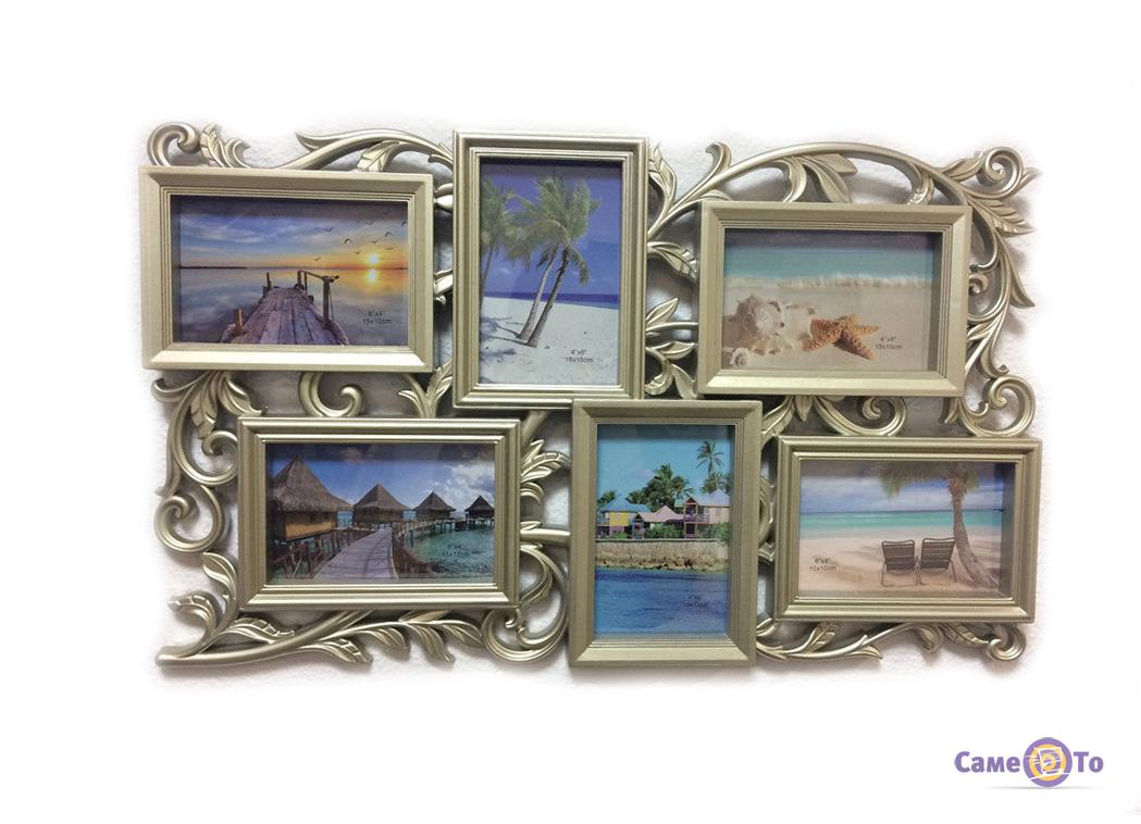Витончена і вишукана рамка для фотографій з вінтажними елементами в флористичному стилі - кращий спосіб додати родзинку інтер'єру з класичним дизайном, дизайном в стилі кантрі або стилі модерн. Представлена модель рамки має шість секцій, в які ви зможете помістити самі ваші улюблені, дорогі серцю фотографії.