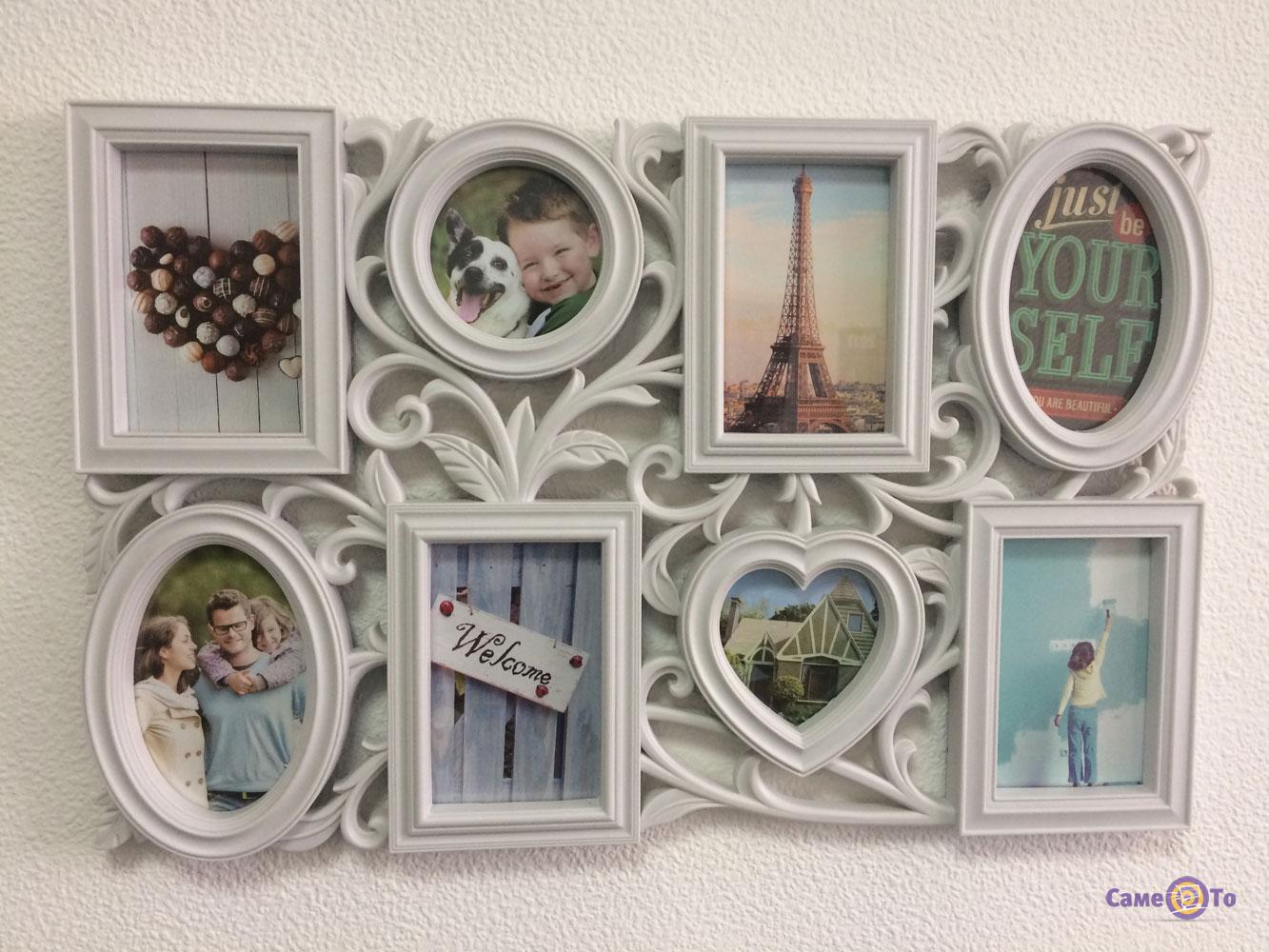 Вешать фотографии просто так на стену, прикрепив их кнопкой, конечно же, не стоит. Они должны иметь стильное и красивое оформление - красивую рамку. Мы предлагаем вам купить мультирамку в винтажном стиле с флористическим узором. В ней можно разместить сразу восемь фотографий разных размеров. Особенность данной рамки состоит в том, что в неё можно поставить фото в виде сердечка, овальное, круглое фото и обычные прямоугольные фотографии. Это очень оригинально и креативно.