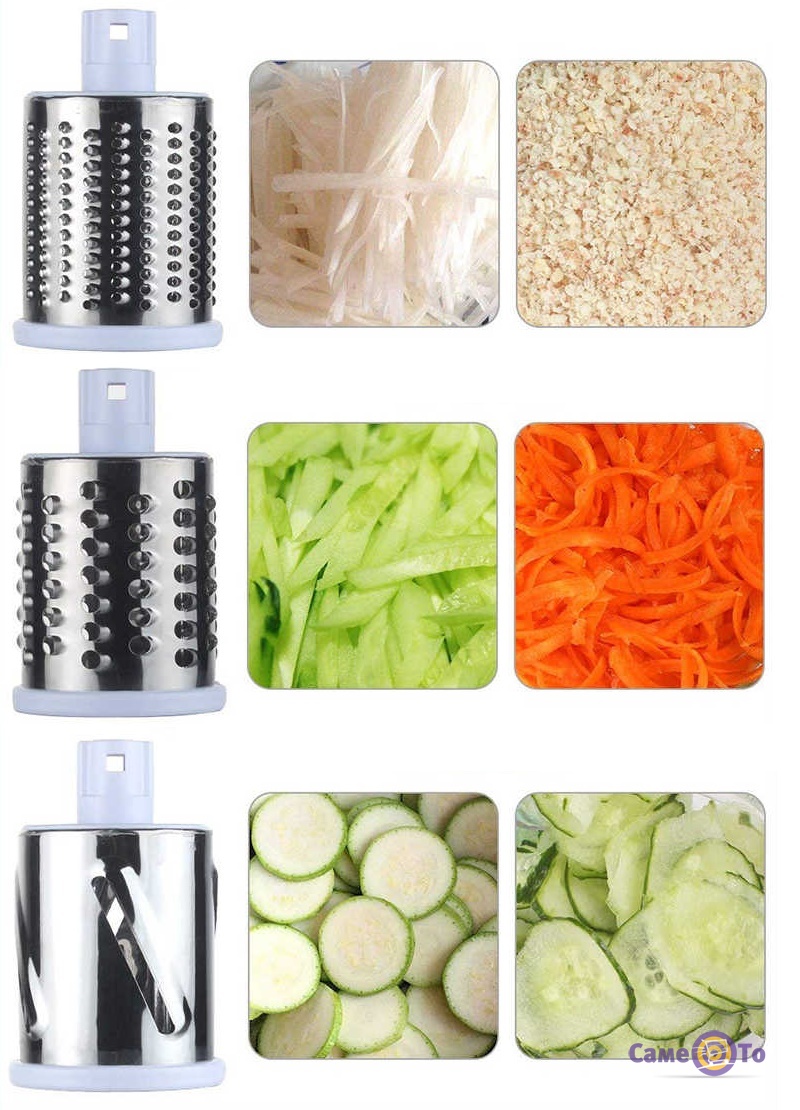 Где купить терку для овощей знает практически каждая хозяйка. А где выгодно купить измельчитель не каждая. Любая домохозяйка скажет, что самое сложное в приготовлении пищи – это терка для продуктов. Ведь во время процесса можно поранить палец, испортить новый маникюр или стереть часть ладони. Слайсер для овощей купить – это отличное решение, с помощью которого можно нашинковать капусту, натереть овощи или измельчить продукты без особых физических затрат. Представленная механическая овощерезка, под маркой Tabletop Drum Grater похожа на мясорубку. Она славится высокой эффективностью и мощными функциями.