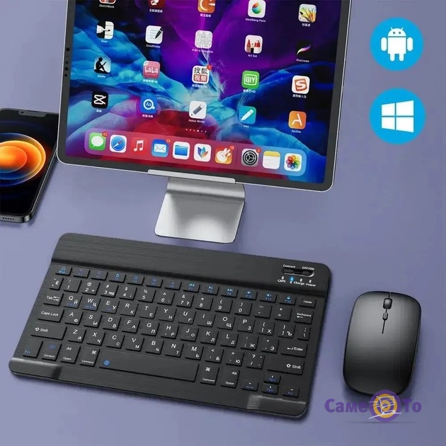 Клавіатура виконана із міцного пластику з металевими елементами, а бездротова клавіатура міні легко розміщується на столі або в сумці для ноутбука. Мишка бездротова тиха, легка та ергономічна, що робить її зручною для тривалої роботи. У комплект входить USB-ресивер для надійного підключення та сумісність з Android, iOS та Windows.