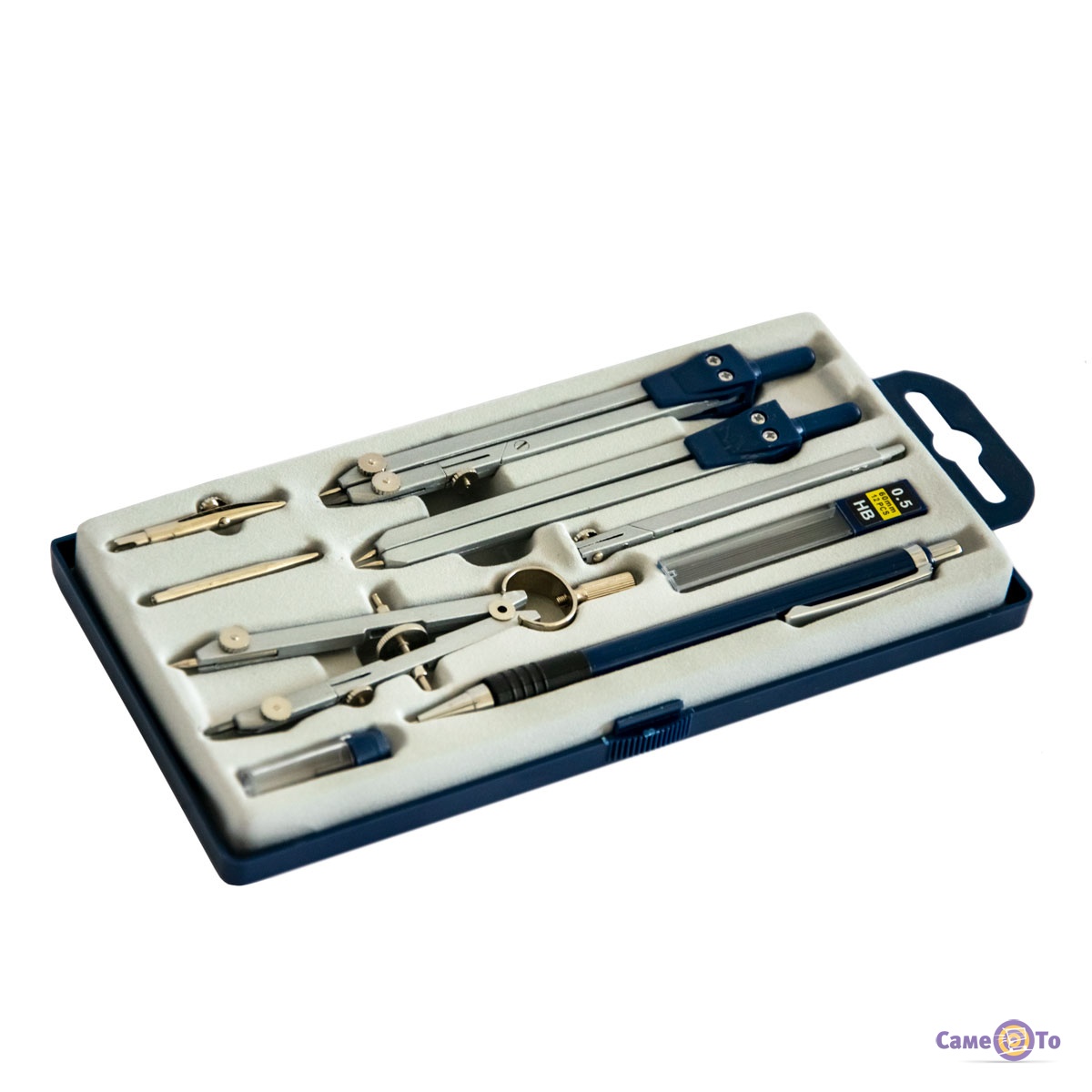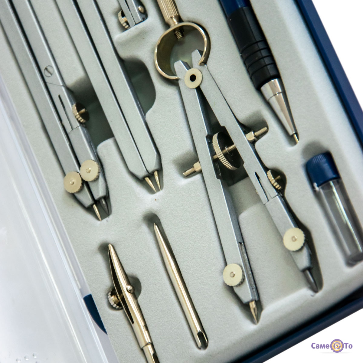 У набір входять різні інструменти, такі як циркуль, механічний олівець та інші. Всі вони виконані з високоякісних матеріалів та забезпечують високу точність та надійність при роботі. Циркуль - один із найважливіших інструментів у наборі. Він використовується для створення кіл і кіл на кресленні. Вимірювальний циркуль дозволяє визначати відстань між двома точками та переносити його на аркуш паперу. Циркуль вимірювач також дозволяє вимірювати кути та довжини, що робить його незамінним інструментом для створення точних креслень.