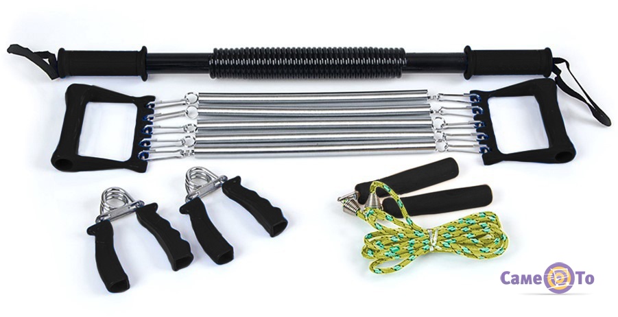 Він підійде для активних і цілеспрямованих людей, які підтримують своє тіло в тонусі. У наборі окрім скакалки поставляється зручний ручний еспандер, розтяжка і згинач. Така комплектація допоможе ефективно задіяти всі групи м'язів.