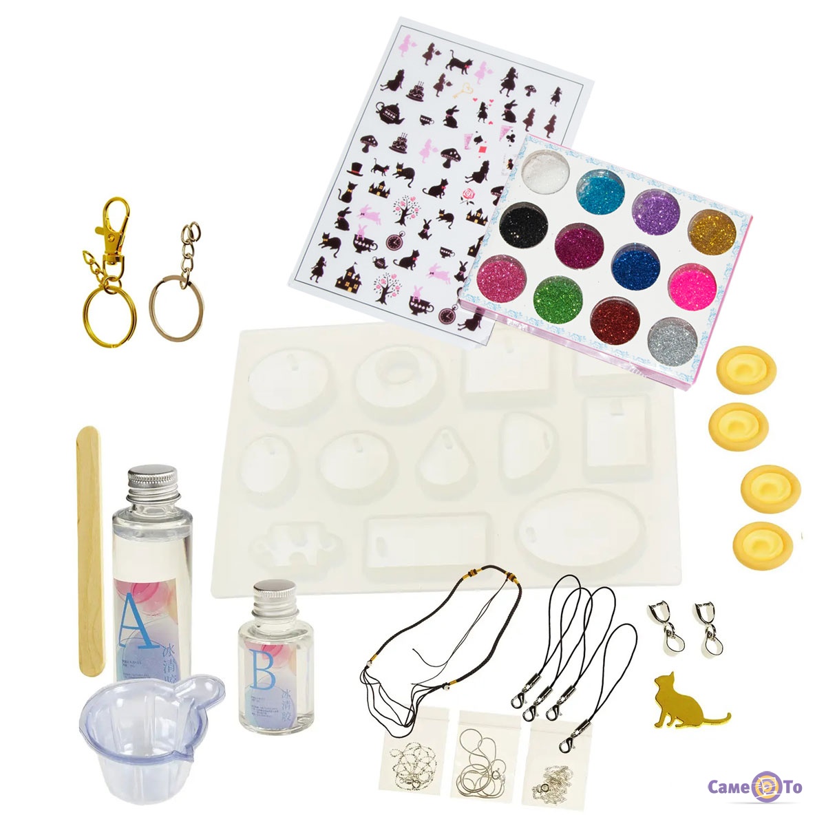 Дополнительные аксессуары: деревянные палочки, напальчники, стикер-лист с наклейками, металлические фигурки (кошка), металлические цепочки, тканевая основа для подвески, аксессуары для брелков.
