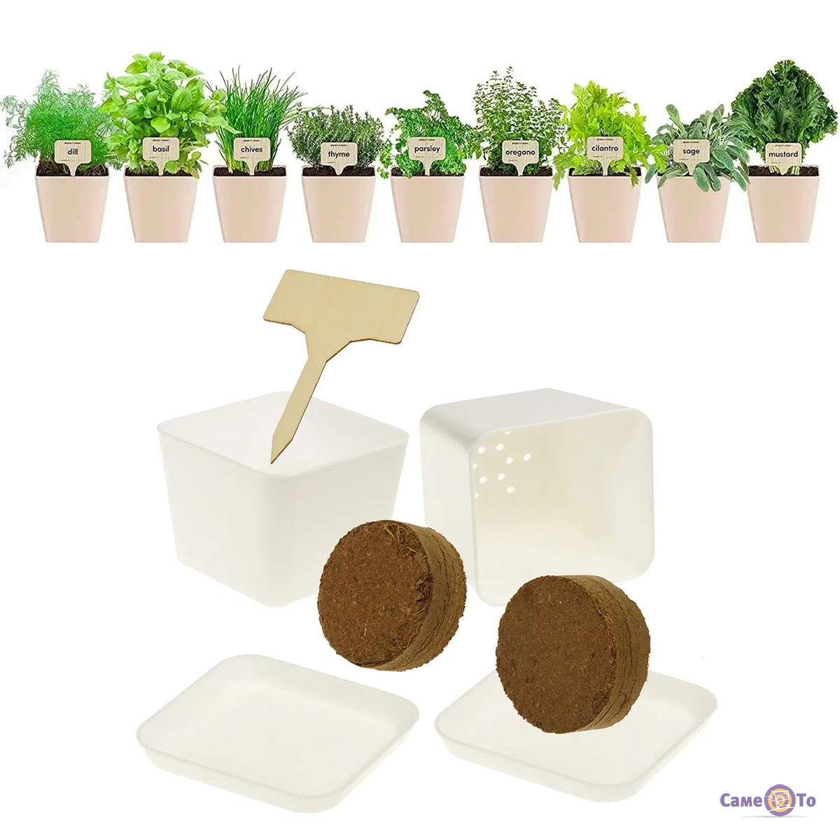 Набір для вирощування рослин - горщик для зелені та ґрунт "Home Garden Growing Kit" 9 штук