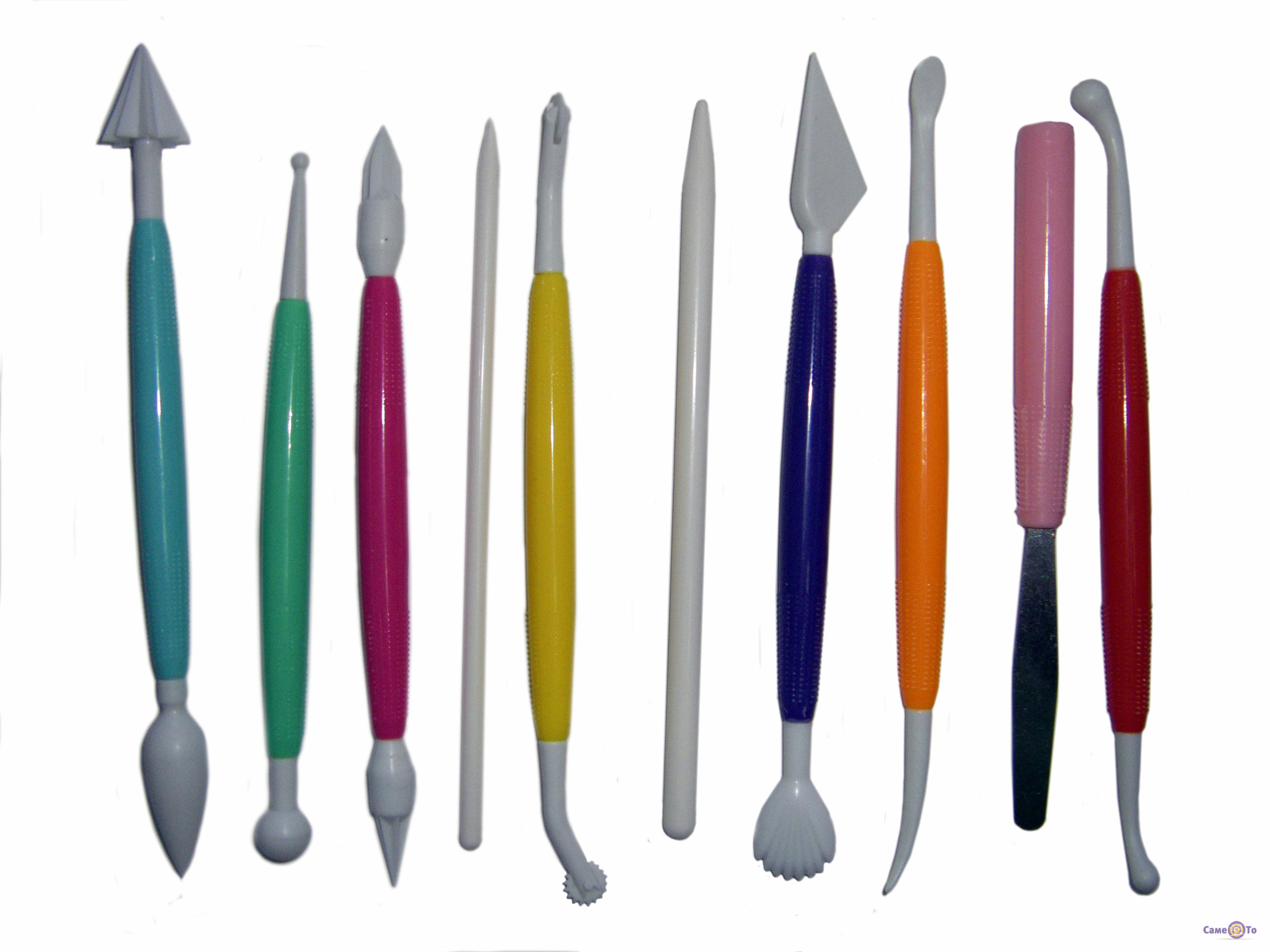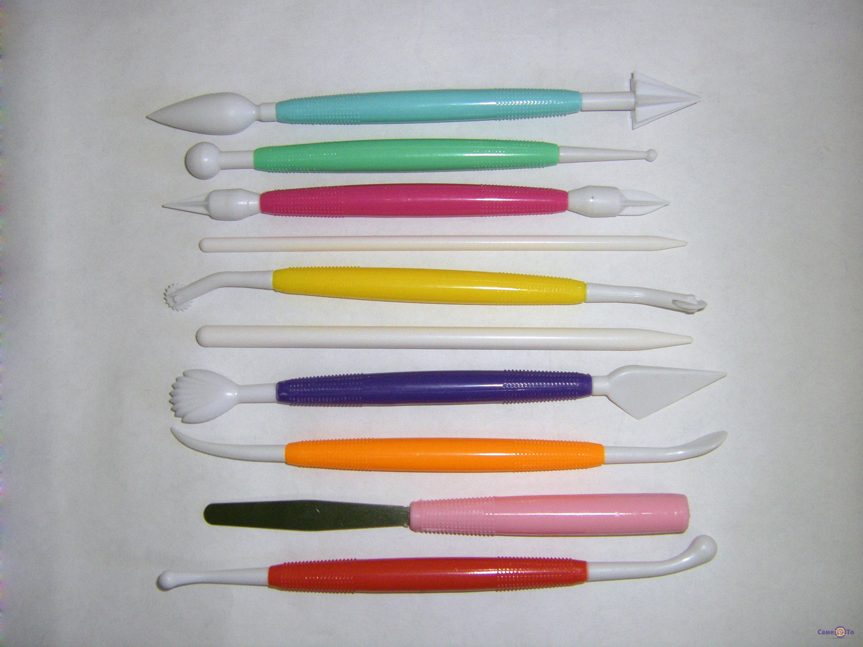 У набір для прикраси тортів Моделінг Тул входить вісім предметів, виконаних з міцного харчового пластику. Кожен стек має два наконечника різної форми, і може застосовуватися для створення двох видів прикрас:
