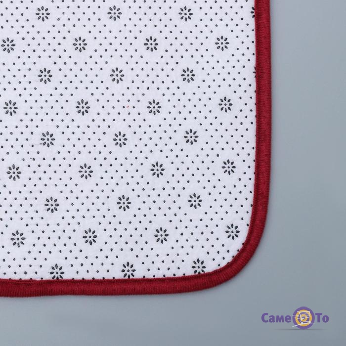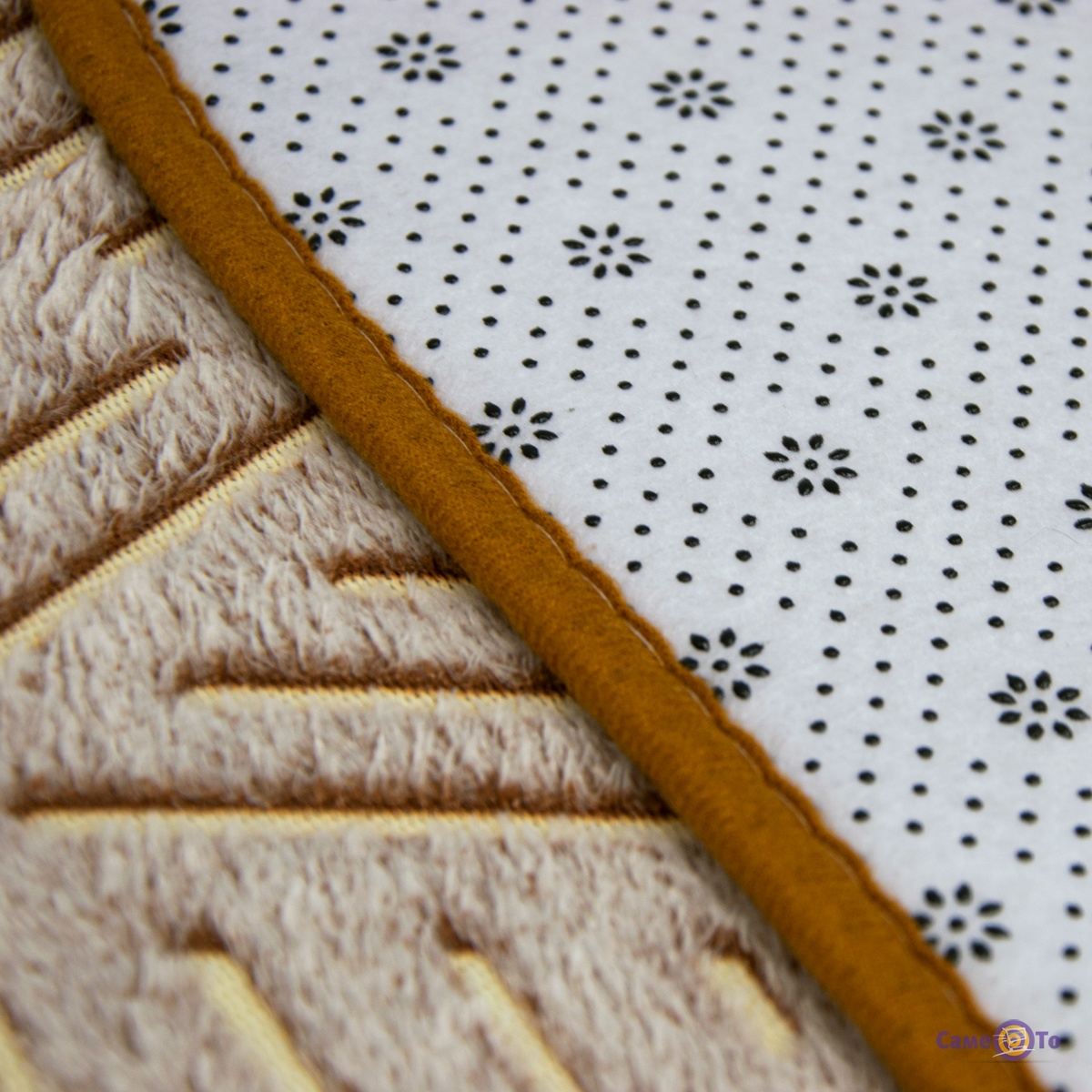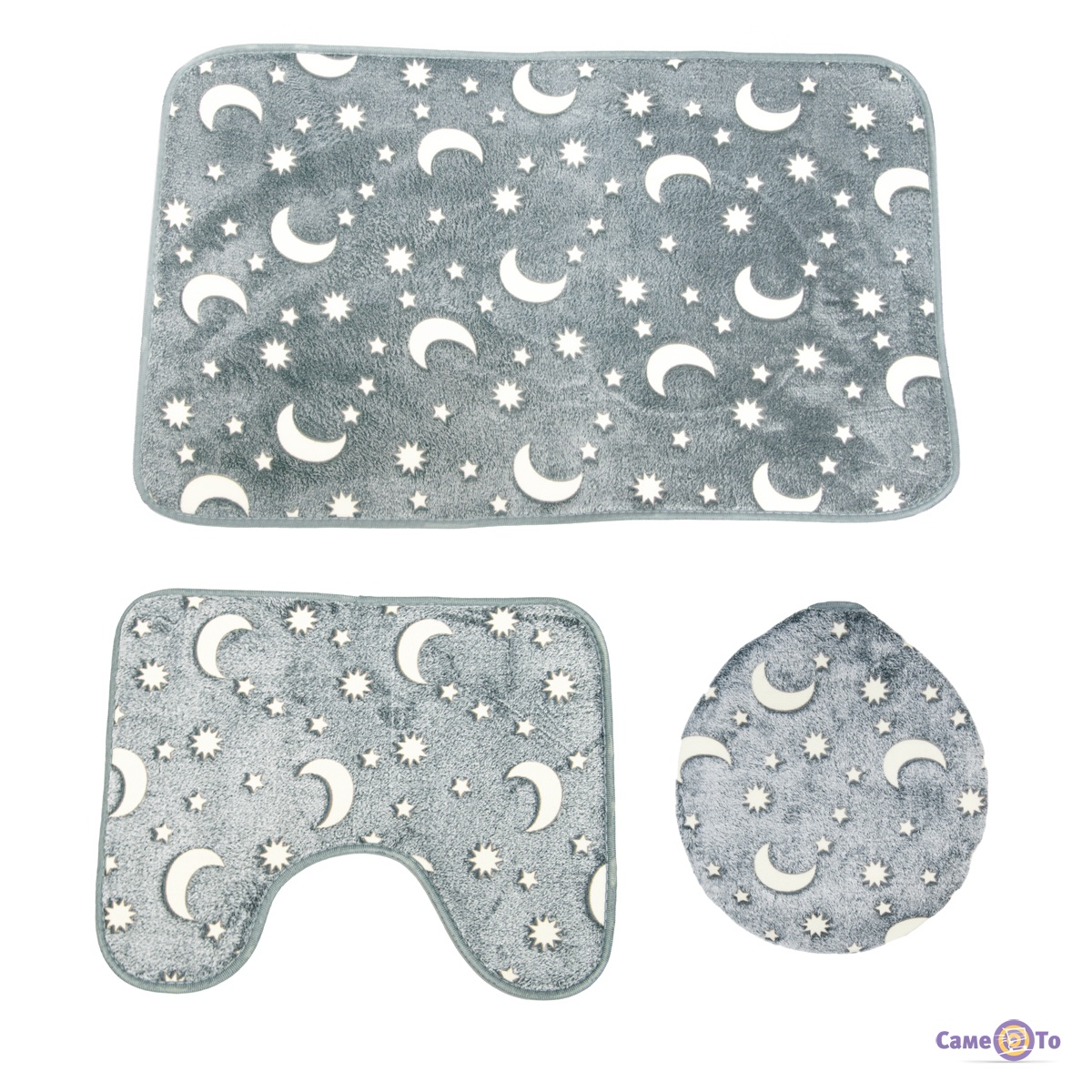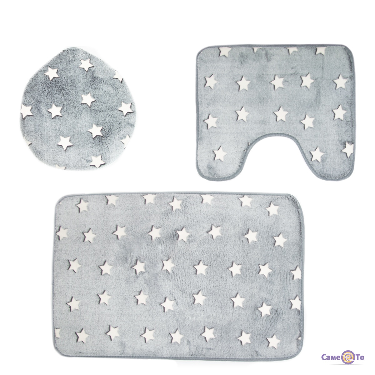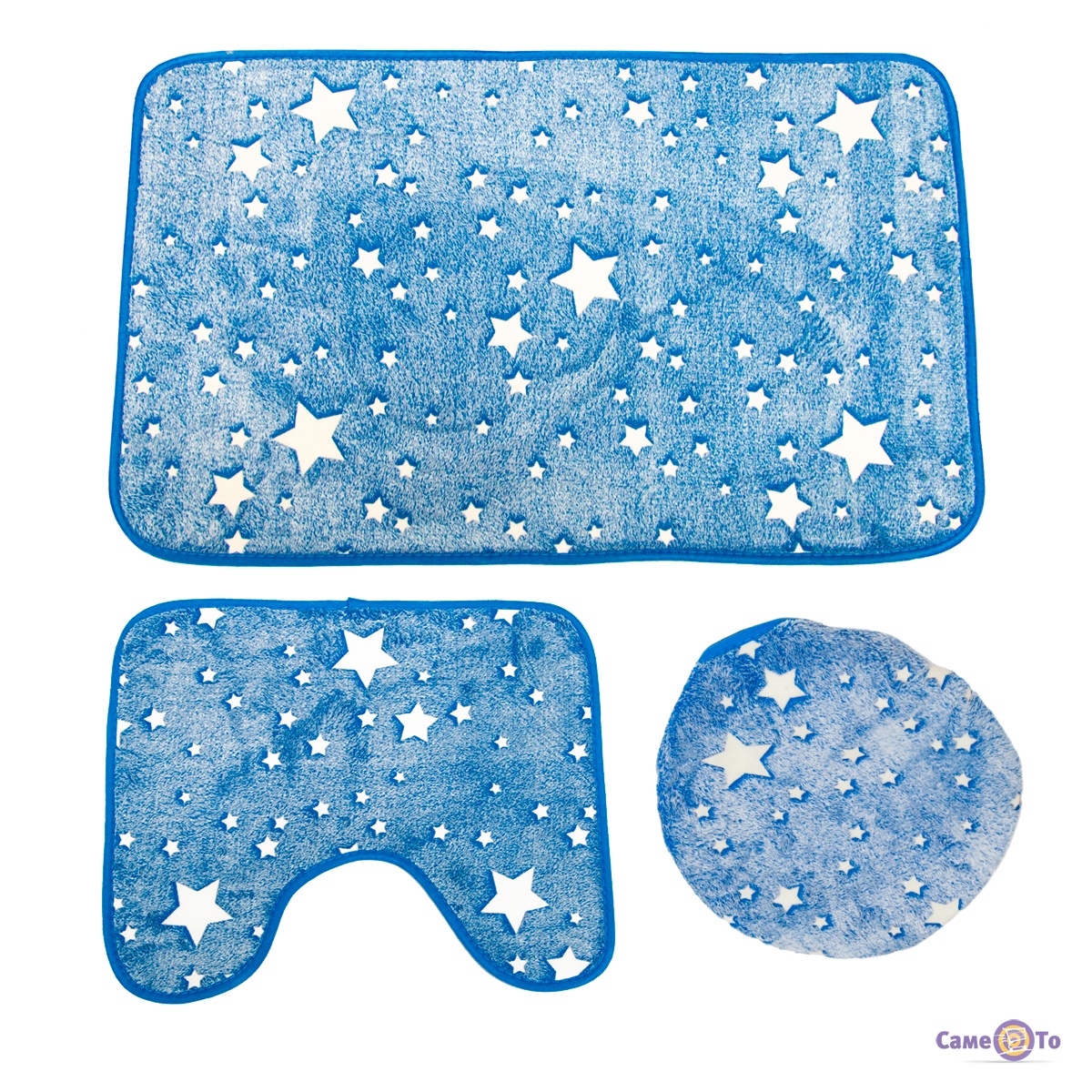 Килимки для ванної кімнати є невід'ємною частиною інтер'єру ванної. Цей набір килимків включає: килимок для ванної кімнати, килимок для туалету, м'який чохол для туалету. Набір килимків у ванну кімнату виготовлений у ніжних відтінках, за рахунок чого підійдуть під будь-який інтер'єр. Вироби мають короткий та м'який ворс. Також килим у ванну кімнату має невеликі гумові «кнопки» знизу, що запобігає ковзанню. Розміри стандартні, вага дорівнює 350 г. На 80% килимок складається з поліестеру та на 20% з ТПР.