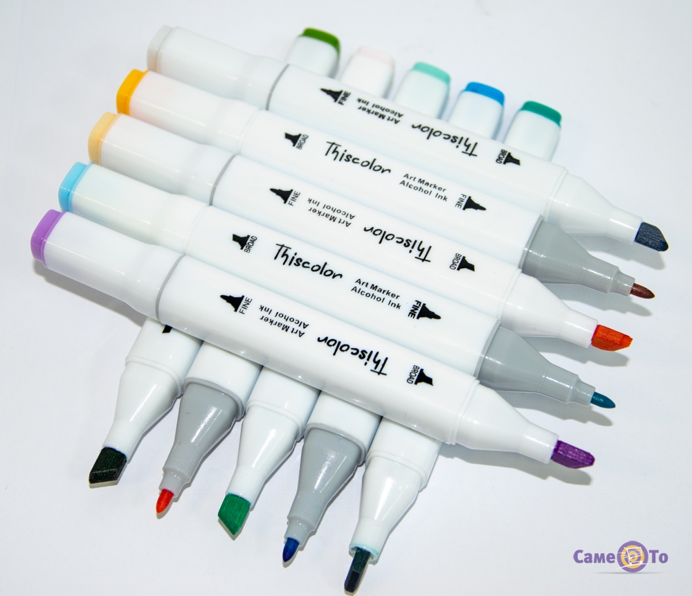 Thiscolor 24 PCS чудово підійдуть для створення робіт на щільному папері або картоні. Спиртова основа дозволяє чорнила добре вбиратися. Працювати зі скетч маркерами нескладно, їх можна купувати не тільки для дорослих, але і для дітей, захоплених творчістю.