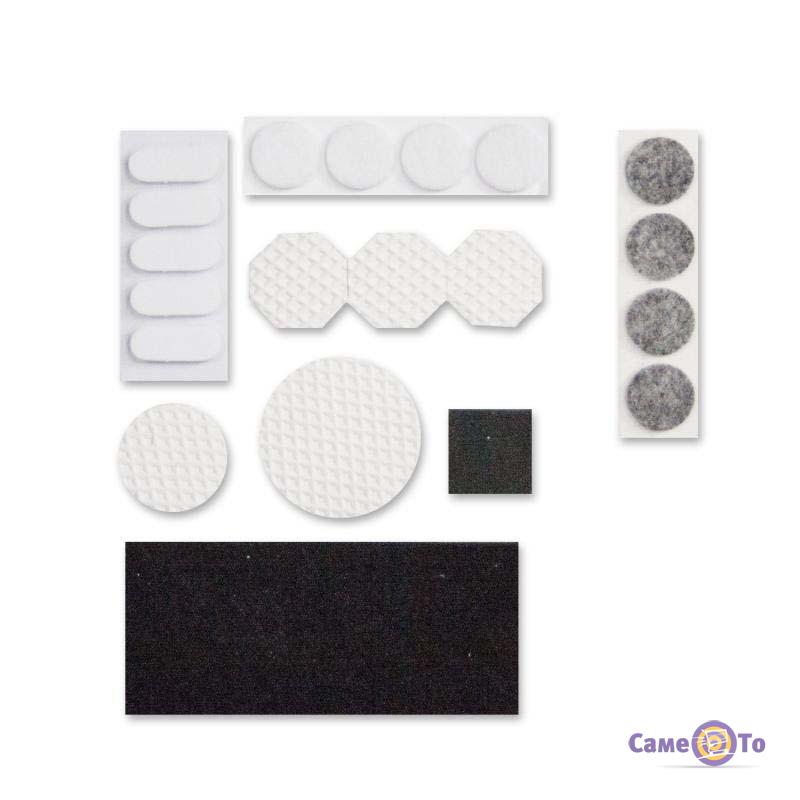 Підкладки для меблів самоклеючі зроблені з м'якого фетру. На одну сторону кожної підкладки нанесений спеціальна речовина, що клеїть, завдяки якій вони прилипають до ніжок меблів від одного дотику. У комплект входять підкладки дев'яти видів, що відрізняються за розміром і формою, серед яких Ви обов'язково підберете потрібну модель для будь-якого виду меблів: