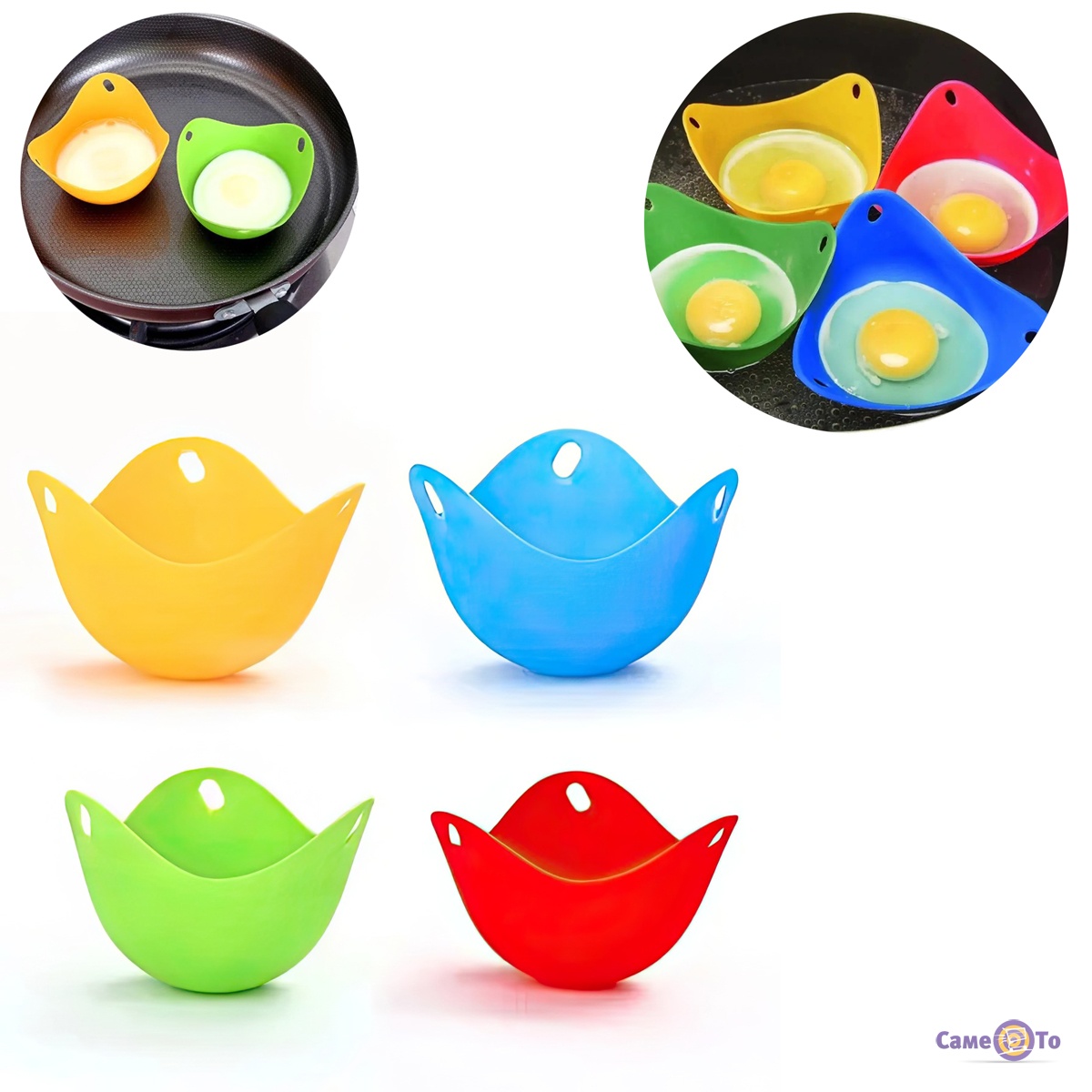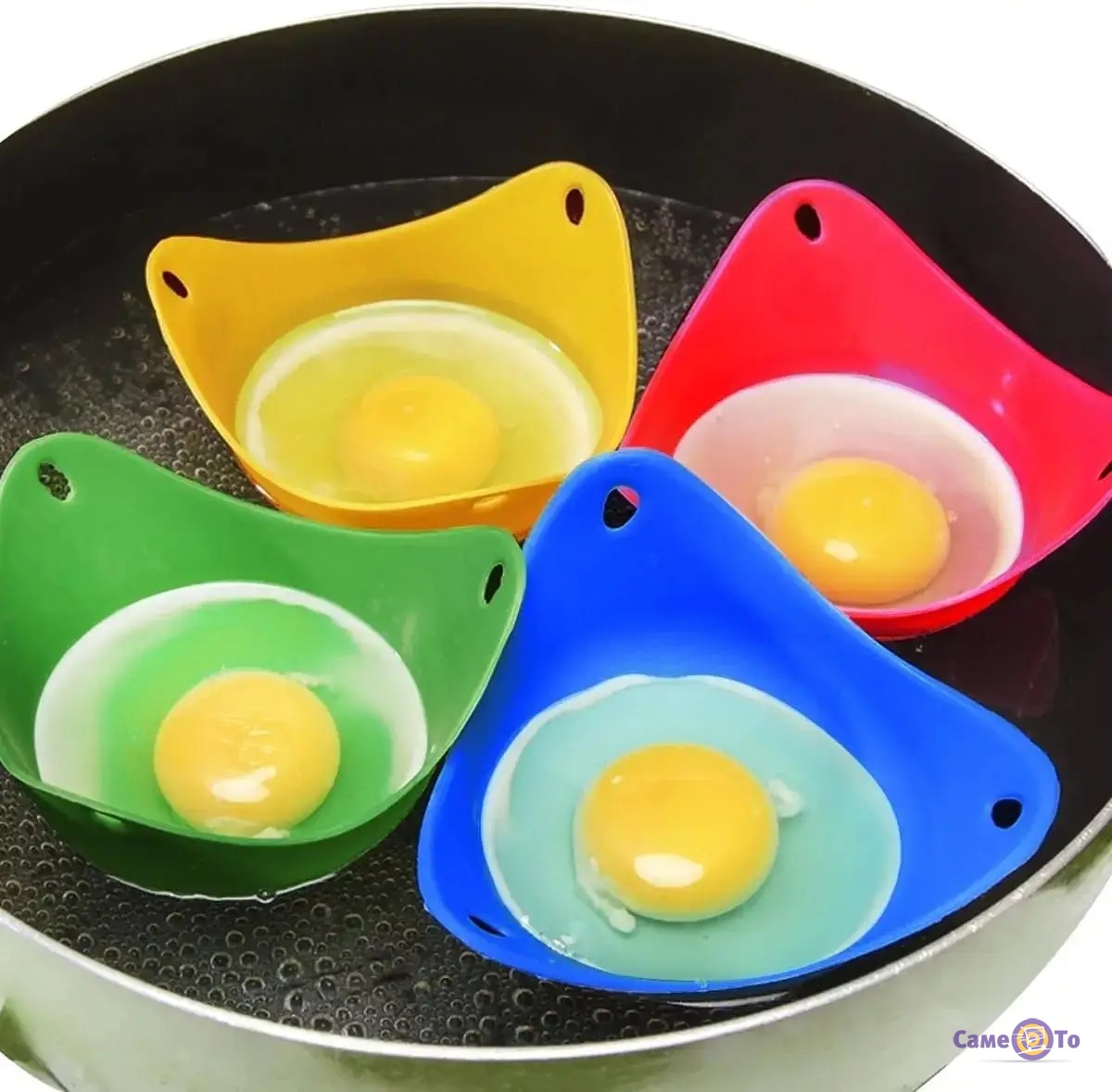 Перетворіть приготування яєць пашот на творчий процес з нашим дивовижним набором силіконових форм. Чотири яскраві кольори дозволяють вам додати веселощі та креативність до своєї кухні. Ці гнучкі, стійкі до спеки форми забезпечують легкість використання. Просто покладіть форму в киплячу воду, додайте яйце, і за кілька хвилин у вас буде ідеальне яйце пашот. Цей набір також є ідеальним для приготування маленьких омлетів або яєчні. Процес чищення легкий, і вони підходять для посудомийної машини. Задоволення від варіння яєць пашот стало ще простіше та яскравіше з цим різнокольоровим набором форм. Приготуйте яйця із задоволенням та насолоджуйтесь кулінарними експериментами на кухні!
