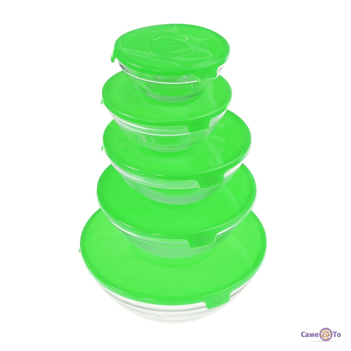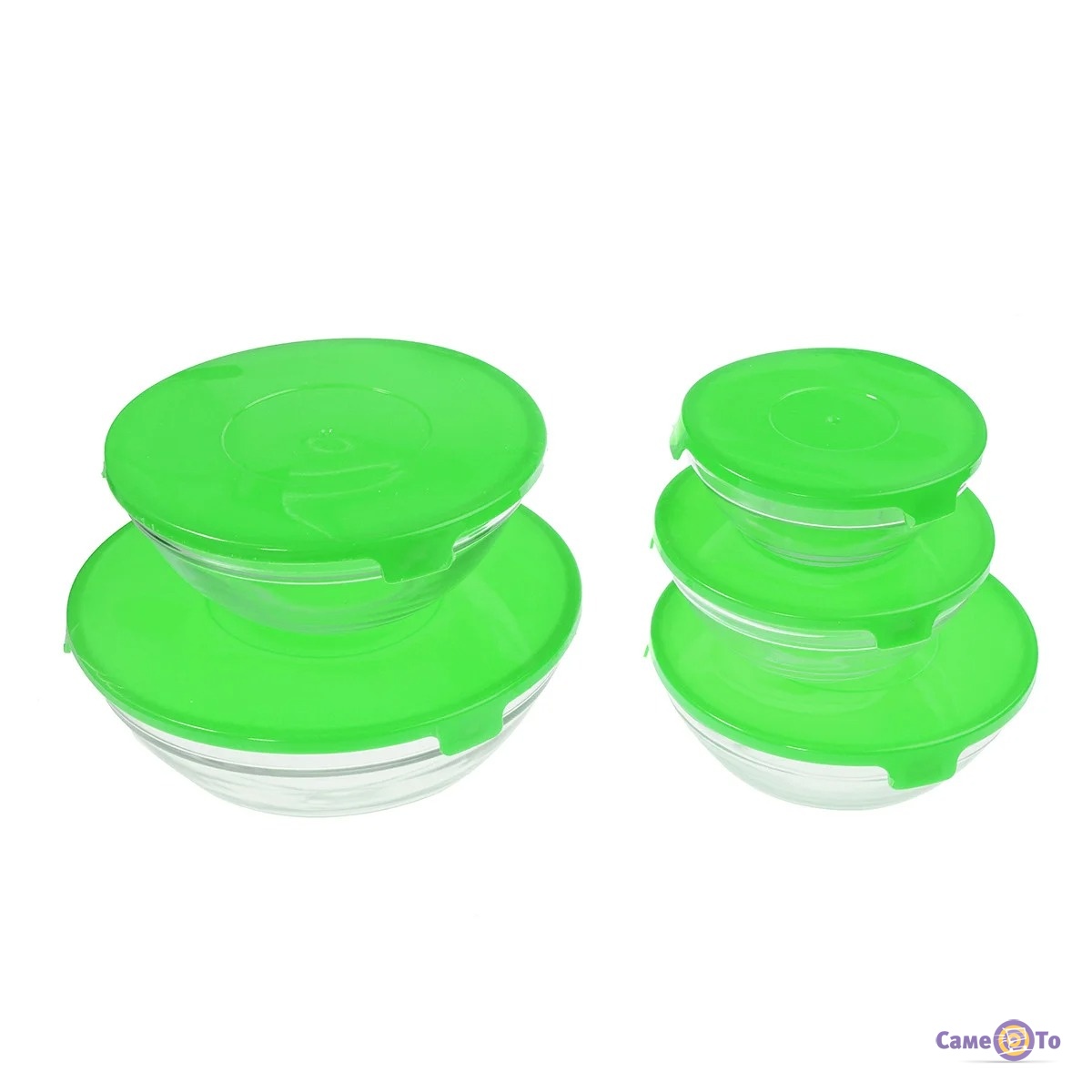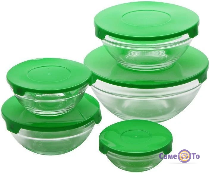 Набір харчових контейнерів для їжі (5 шт./уп.) із зеленою кришкою, скляні судочки