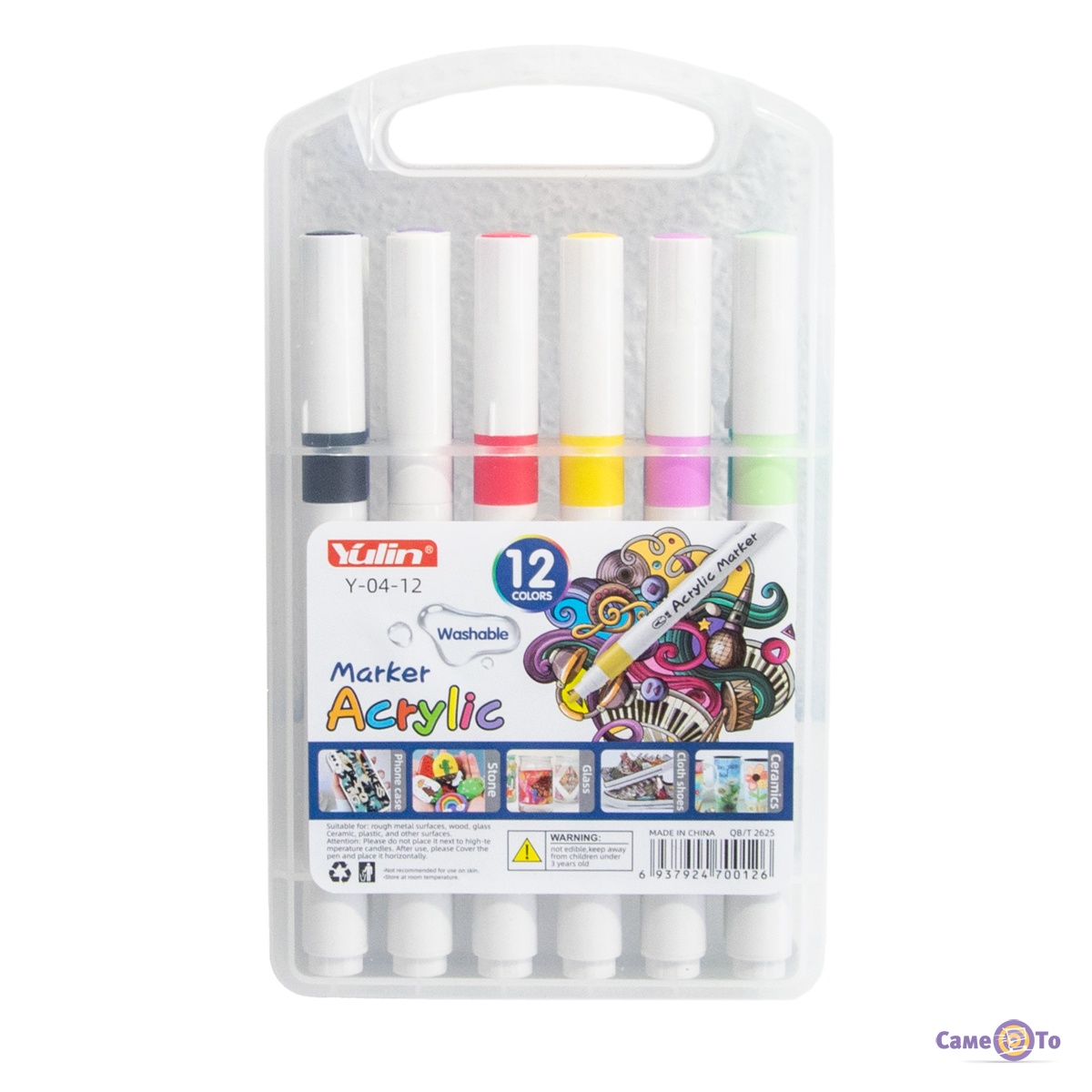 Набір маркерів акрилових Marker Acrylic Yulin Y-04-12 – 12 шт./уп. у зручному кейсі.