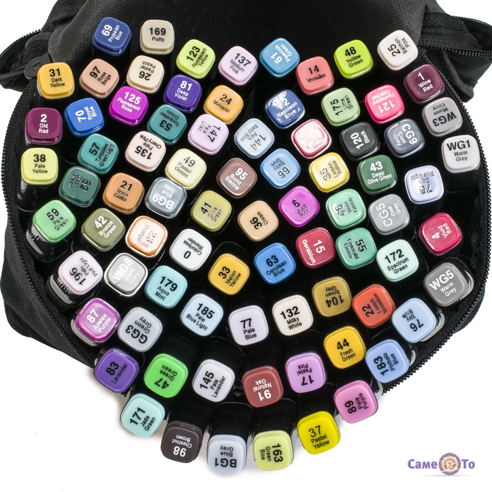 Спиртовые маркеры Touch для тех, кто увлечен рисованием и каллиграфией, предпочитает делать комиксы и живописные наброски. В комплекте 80 маркеров различных цветов. Корпус маркеров пластмассовый, удобно держать в руках. Колпачки фломастеров хорошо закрываются, тем самым не пересыхают и не портятся при не пользовании ими. Для удобства определения на подобии пера концы маркеров покрашены различным цветом.