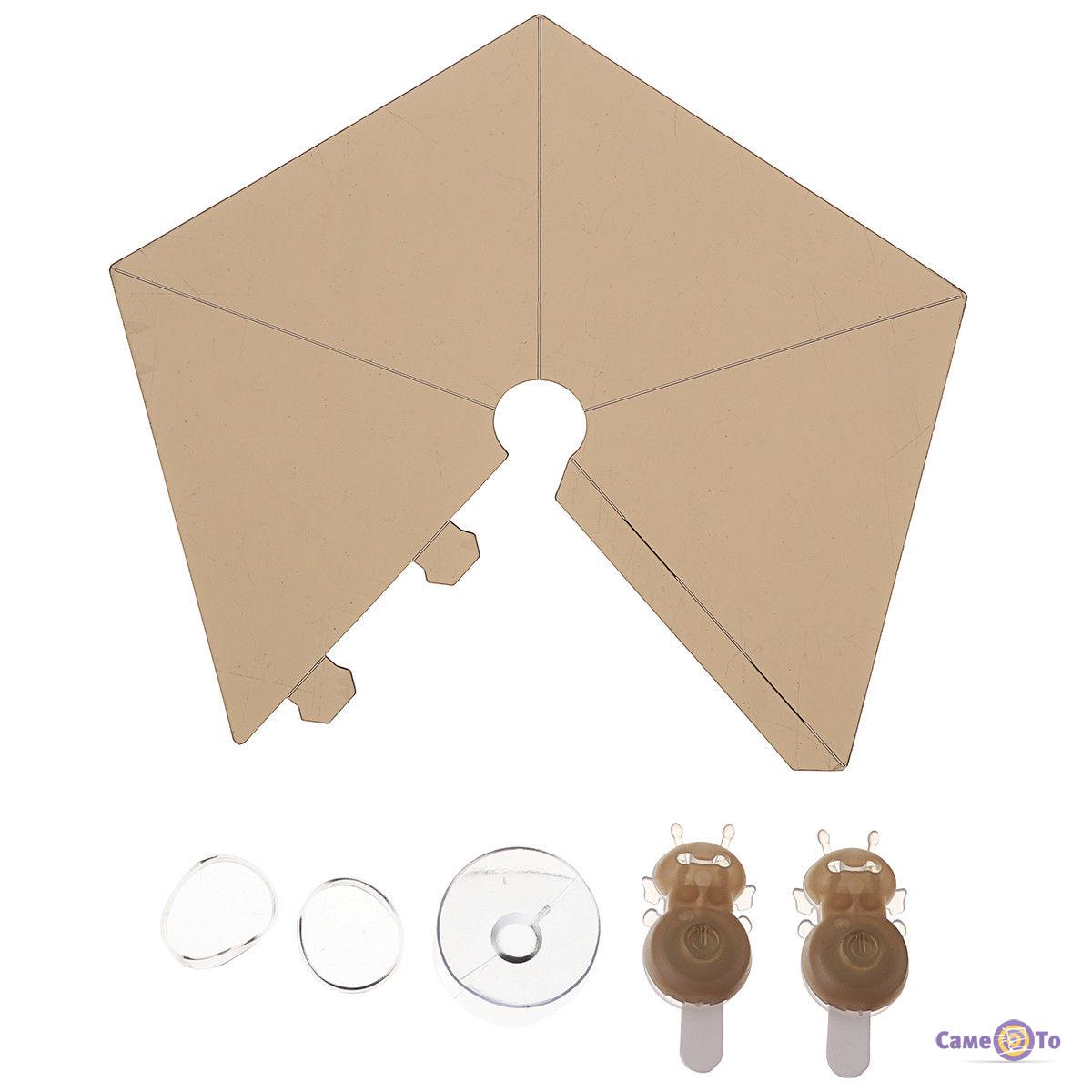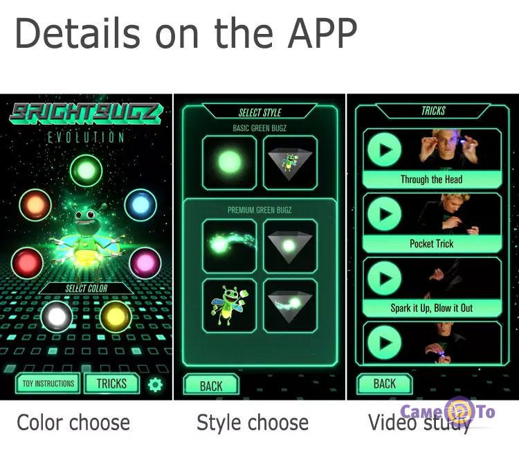 В комплект Мagically flies входит две пчелки с LED-элементом, которые можно одеть на палец. Свечение игрушек можно контролировать включением и выключением кнопки. Также в наборе есть присоска, фиксирующаяся на экране гаджета. Она помогает создать пирамидку для фокусов, которая в буквальном смысле будет находиться в воздухе.