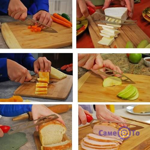 Иметь на кухне набор качественных, острых и удобных ножей – мечта каждой хозяйки. Наверняка, Вы не раз сталкивались с тем, как во время нарезания ингредиентов на салат, продукты прилипают к лезвию. По старинке приходилось часто мыть нож водой, чтобы хоть как-то облегчить процесс. Но теперь от данной неприятности можно легко избавиться, купив набор аэроножей для кухни, состоящий из 9 штук.
