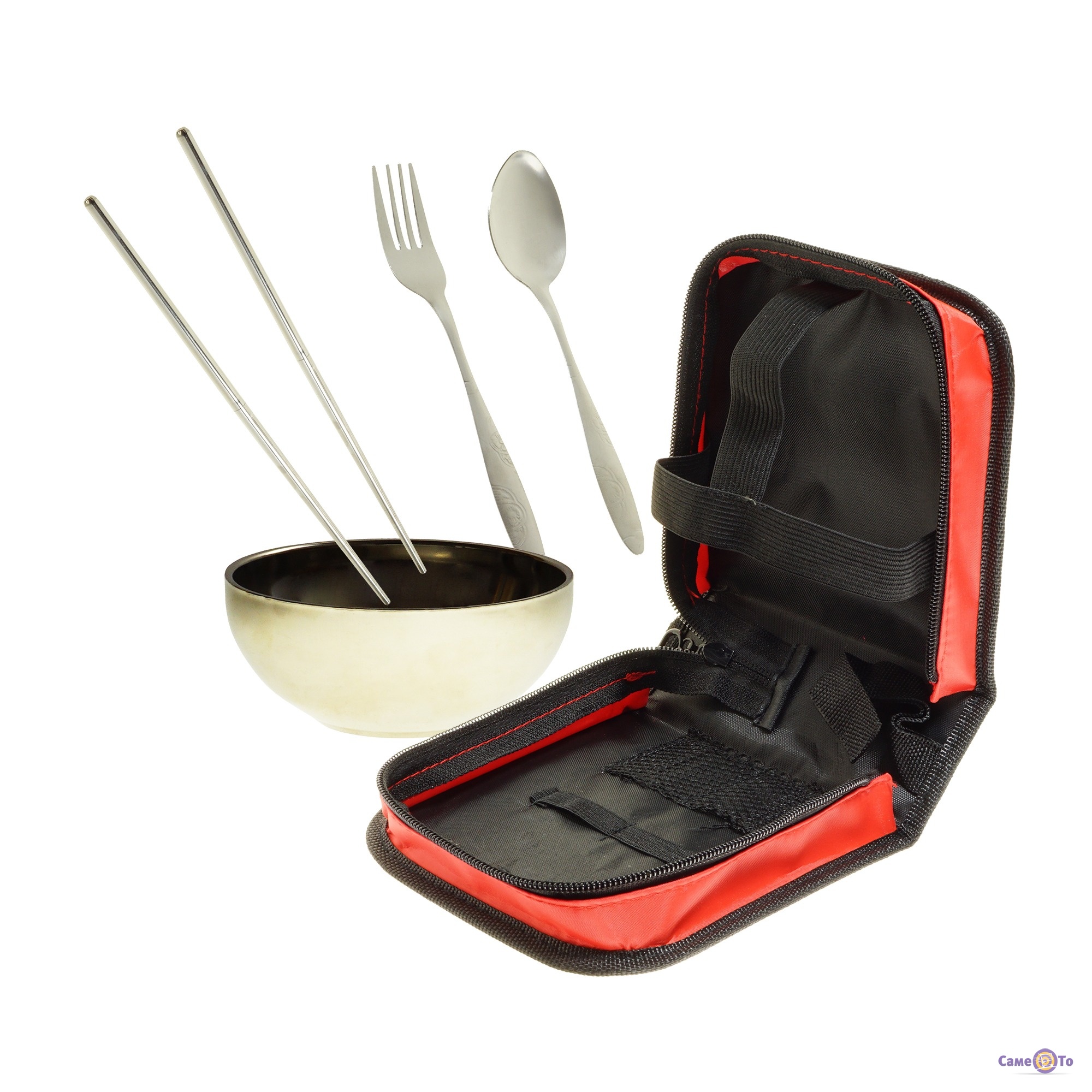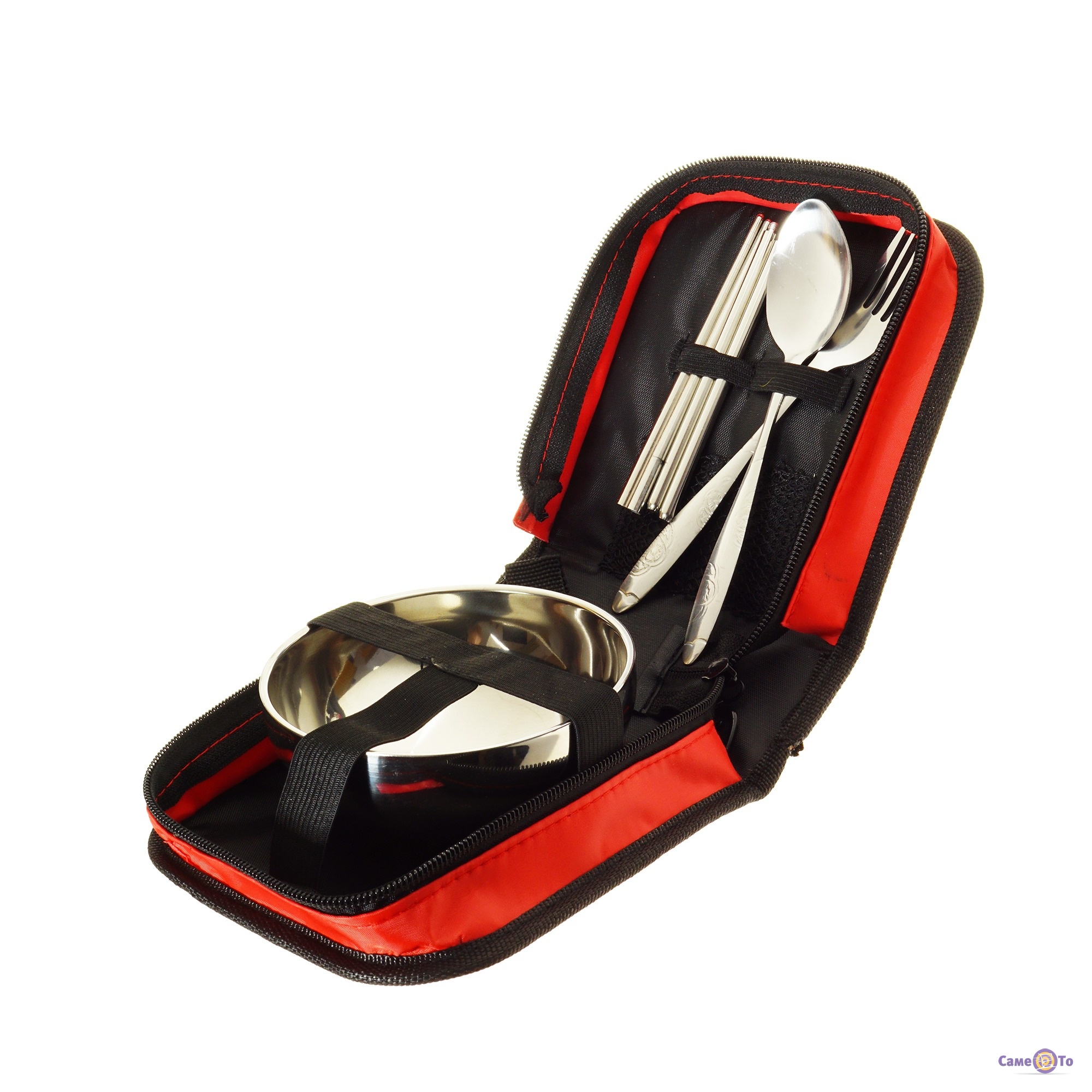 Набор туристической посуды из нержавеющей стали в красном чехле