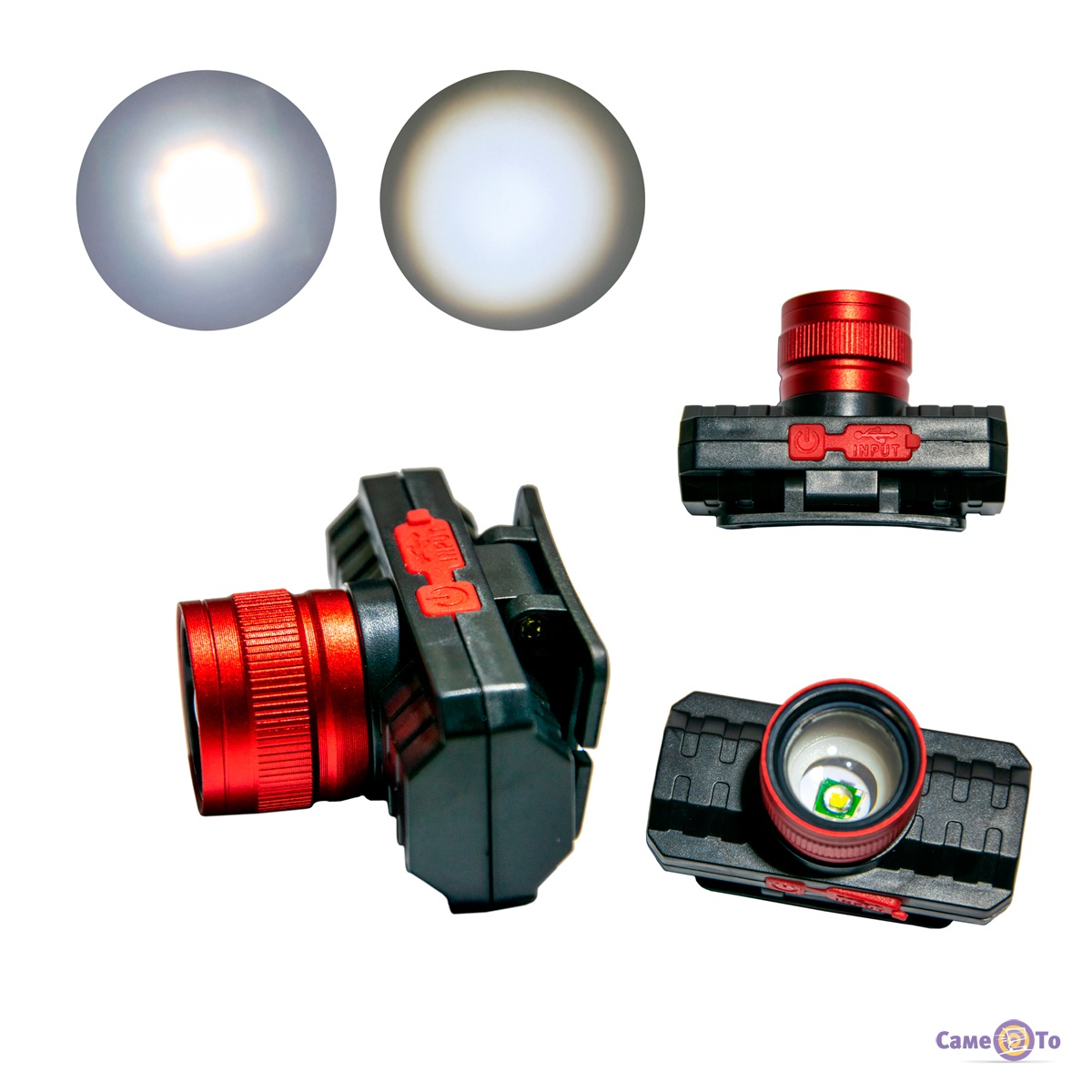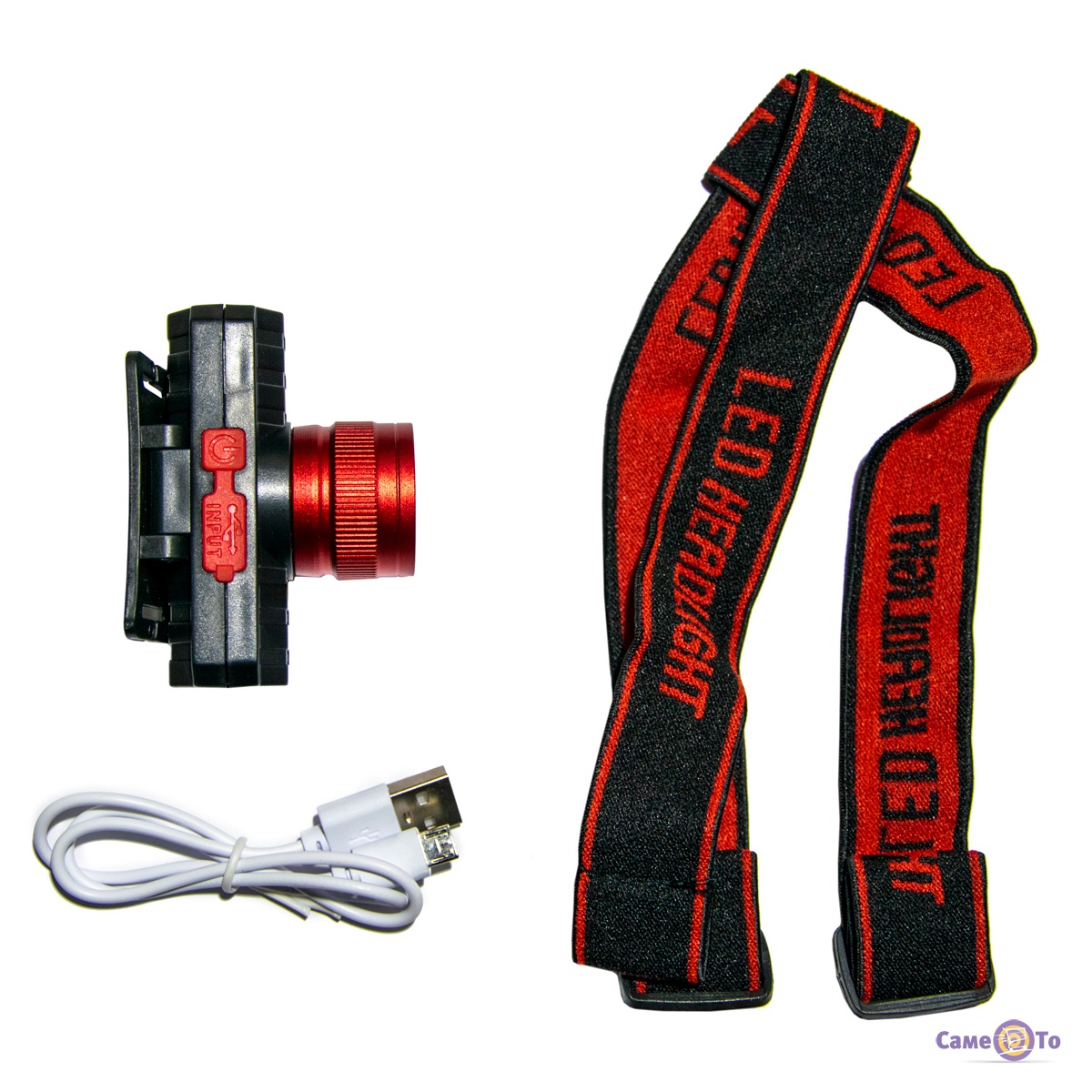 Налобний ліхтар на акумуляторі Червоний, LED ліхтарик