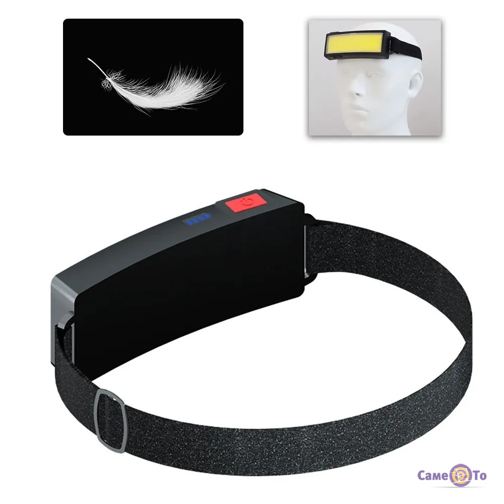 Світлодіодний ліхтарик налобний за технологією COB з вбудованим акумулятором. Нова технологія COB тепер і в налобних ліхтарях – рівномірне та яскраве світло. 3 режими свічення: сильний, слабкий, миготіння (стробоскоп).